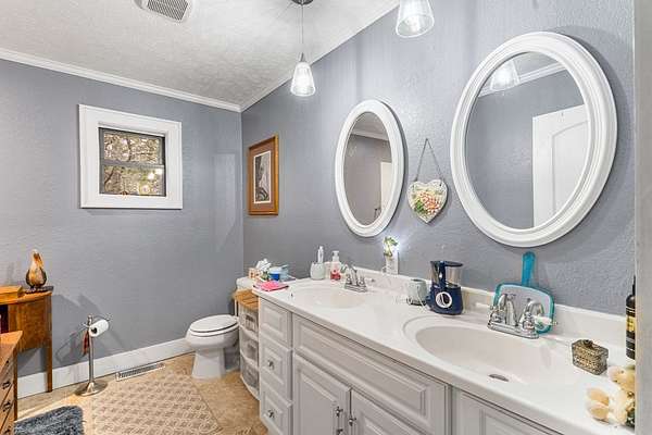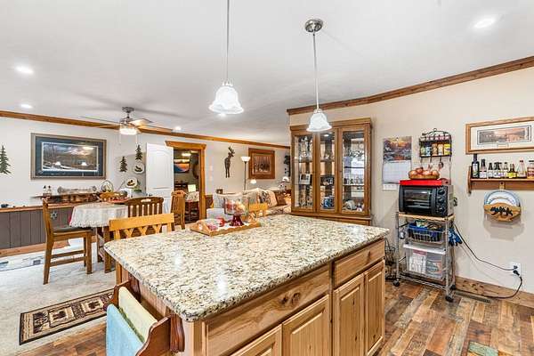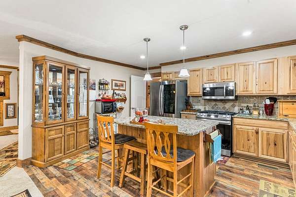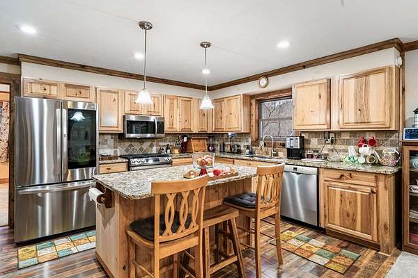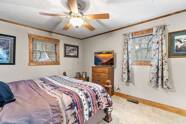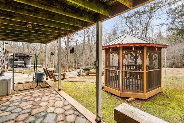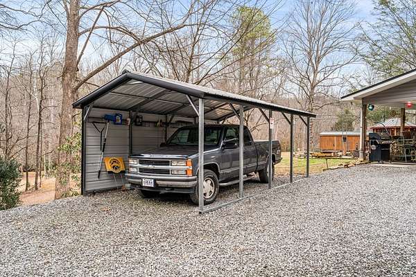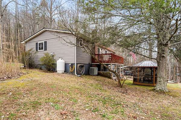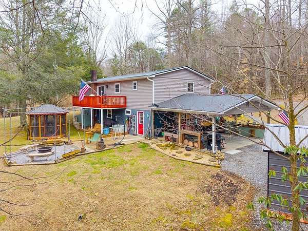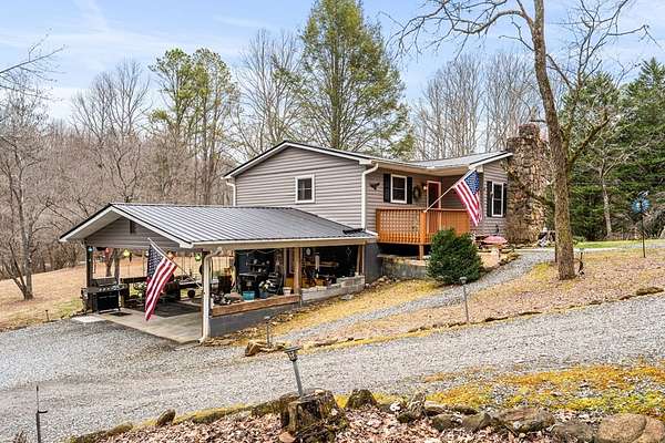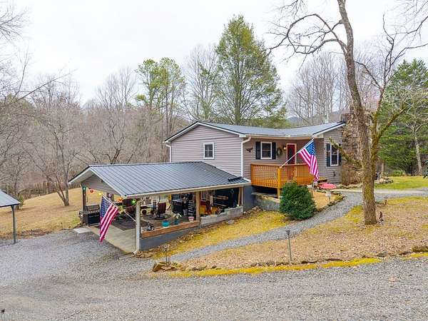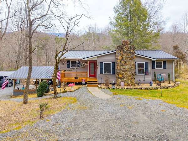 CREEK FRONT CABIN IN THE NORTH CAROLINA MOUNTAINS! FISH IN YOUR OWN BACKYARD...NATIVE TROUT!! Come experience true mountain living with the soothing sounds of bold Eagle Fork Creek right in your backyard. This charming 2-bedroom PLUS a bonus room, 3-bath cabin features dual master suites, making it ideal for guests, full-time living, or a mountain retreat. Inside, you'll find a warm and inviting interior with hickory kitchen cabinets, granite countertops, a center island with breakfast bar, stainless appliances, gas stove, laminate flooring, and updated bathrooms. The open living area could offer a cozy wood-burning fireplace (currently located behind the TV wall), perfect for cool mountain evenings. Step outside to enjoy the decks & a gazebo overlooking substantial creek frontage. The land is fully usable with easy, level to gentle access down to the water -- perfect for relaxing, entertaining, or simply enjoying the peaceful setting. Additional features include: Partially unfinished basement with bonus room & bathroom, workshop area storage area, laundry, 2-car carport, separate 1-car carport and a one car basement garage (currently enclosed but can be converted back). As an added bonus, you're just a short walk to Eagle Fork Vineyards -- enjoy local wine, live music, and community events practically at your doorstep. With beautiful mountain views, strong creek frontage, and convenient access, this cabin offers the perfect combination of comfort, character, and location.