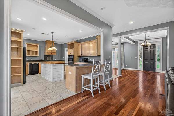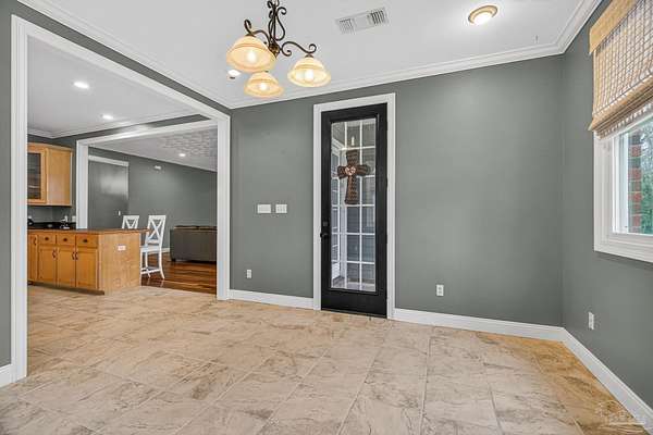 Experience authentic Southern charm in this beautifully maintained, traditional brick home that shows like new. A wide, welcoming front porch sets the tone, offering the perfect place to relax and unwind. Designed with both comfort and style in mind, this home features thoughtful finishes throughout, including custom ceilings, well-crafted cabinetry, and spacious countertops complemented by a large walk-in pantry. The split-bedroom layout provides privacy, while the open flow includes a generous breakfast area, a formal dining space, and a comfortable family room ideal for gathering. Each of the three bedrooms offers ample closet space, and the home is equipped with energy-efficient windows and insulation for added comfort and savings. Step just off the main living area to a screened back porch-perfect for enjoying your morning coffee or winding down in the evening. The rear entry leads to an oversized laundry room and a dedicated office space, conveniently located near the carport. Situated on approximately 5 acres of beautifully maintained and private land, the property also includes a detached, guest house and a HUGE in-ground saltwater POOL, creating a versatile and inviting outdoor setting. Schedule your private showing today and see everything this exceptional property has to offer. THIS LISTING CONSISTS OF TWO PARCELS 27-08-34-0-000-002.011 & 27-08-27-0-000-009.003 totaling approximately 5 acres.