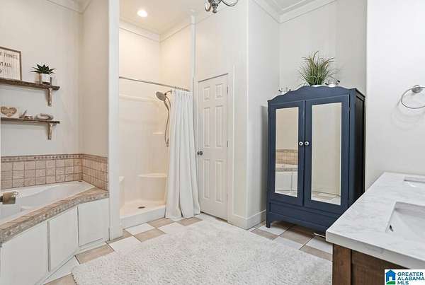 - French Doors, Garden Tub, Recess Lighting, Separate Shower, Separate Vanities, Split Bedroom