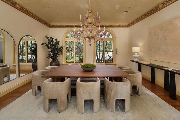 A landmark estate meticulously restored with extraordinary craftsmanship and refined finishes for modern living. Heated floors, Venetian plaster walls, gilded carved moldings, and crystal chandeliers create an elegant yet comfortable environment for both entertaining and daily life. Approximately 1.7 gated acres showcase formal gardens, expansive terraces, and towering hedges that provide layered privacy and exceptional outdoor settings. Integrated technology manages sound, lighting, climate, and security, while solar power supports electricity and Tesla charging station is in the garage. Living quarters are arranged across 3 levels with 8 bedroom suites, an additional full bath, and two half-baths. Amenities include a world-class wine cellar, theatre, 3 family rooms, and an executive office. Centrally located in Atherton with convenient access to Stanford University, Silicon Valley tech and venture capital centers, excellent public and private schools, and 2 international airports.