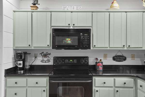 - Dishwasher, Dryer, Electric Range, Microwave, Refrigerator, Washer