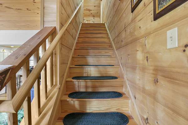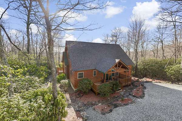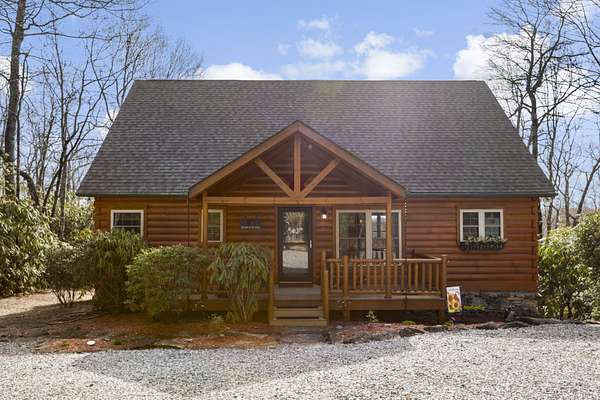 If you're searching for a log cabin in Lake Toxaway with mountain views, modern updates, and a peaceful setting, this property offers a rare opportunity to enjoy mountain living in one of Western North Carolina's most desirable areas. This well maintained 3 bedroom, 2.5 bath home offers the perfect blend of rustic charm and modern updates, surrounded by natural beauty. Step inside to an inviting floor plan with warm wood floors and a stunning rock fireplace and enjoy your mountain views from your couch. The primary bedroom, one full bath and half bath all on the main level. Upstairs enjoy 2 bedrooms and a full bath. Enjoy lovely year round mountain views from the welcoming front porch featuring low-maintenance Trex decking, perfect for morning coffee or evening sunsets. The home is located in a small, well maintained community of only five homes. Updates to the home include new roof, fresh interior paint, granite countertops in the kitchen, new well pump and tank, crawl space encapsulation, attic insulation, radon mitigation system, new storm front door, new washer and dryer, recently pumped septic system, and freshly stained exterior. The seller has done their due diligence on this home and it is truly move in ready. Schedule your showing today!