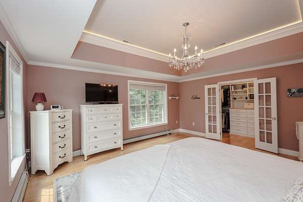 Perched atop the coveted cul-de-sac Of Stonebridge Drive, this luxury residence offers a sanctuary of unparalleled privacy and sophistication. As you approach, immaculately manicured lawns and lush greenery evoke the grandeur of a private estate, welcoming you into a world of refined elegance. Timeless craftsmanship with modern luxury on 4.2 acres of pristine landscape. The interior is a masterpiece of design featuring a gourmet kitchen outfitted with premium appliances and elegant finishes, while custom built-ins in the expansive living room reflect impeccable attention to detail. Every corner of this residence exudes warmth and grace. Ascending to the primary suite reveals a true retreat adorned with a tray ceiling softly illuminated by hidden lighting, rich hardwood floors and elegant glass French doors that open into a sumptuous walk-in closet. The ensuite bath is a spa-like haven showcasing a custom tile shower, intricate basket weave accents and a magnificent soaking tub-an ideal sanctuary for relaxation and renewal. The outdoor living space features a sleek modern deck and a shimmering in-ground pool-perfect for gracious entertaining or quiet moments of reflection. The serene outdoor spaces provide an idyllic escape for restoring your mind, body and spirit. This unparalleled home embodies a harmonious blend of elegance, comfort and serenity-a timeless retreat where every element has been thoughtfully curated to elevate your lifestyle to extraordinary heights.