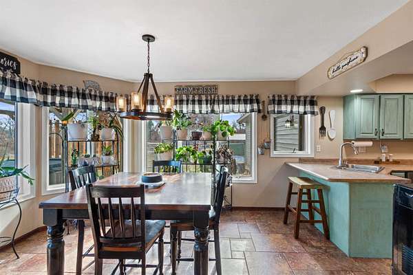 Outdoor enthusiast's paradise! Beautiful, spacious home on 40 private acres in Rome! With 550' of 14-Mile Creek frontage, groomed trails throughout, and bordering DNR land on two sides, this is an outdoors lover's dream come true! Over 4,000 square feet with a light filled living room with stone fireplace, cathedral ceiling, loft overlook, and wall of windows; family room and dining area looking out over an expansive deck, primary suite with 3 season porch, roomy bath, fireplace, and walk in closet; loft office space; vast lower level with a sizeable rec room, large full bath, bonus rooms, kitchen area, storage, and stairs to garage; the 30x26 pole barn, extra sheds, pet fence, extra large yard, and circular drive. Immerse yourself in the luxury of the Great Outdoors ... everyday!