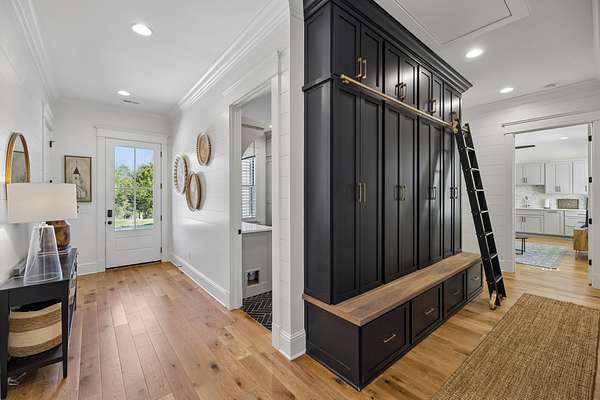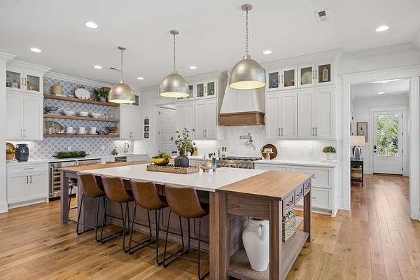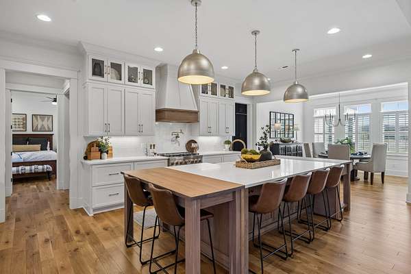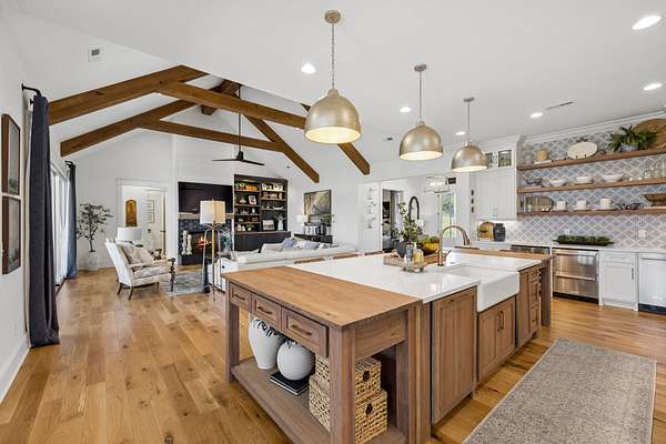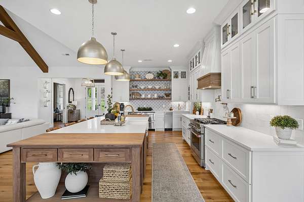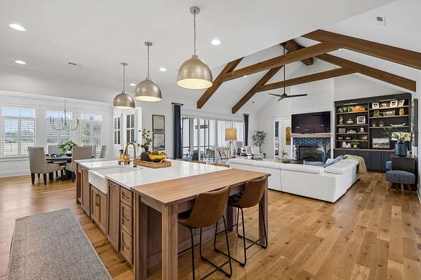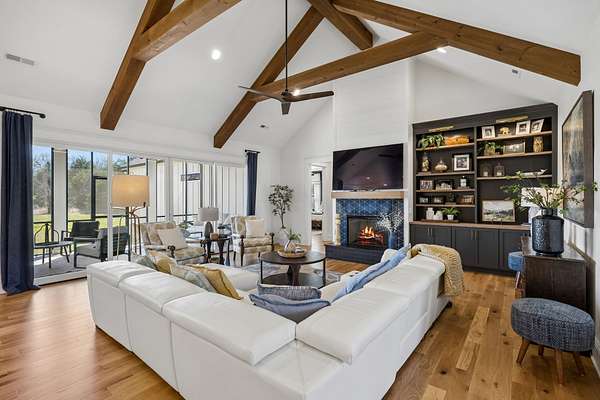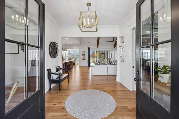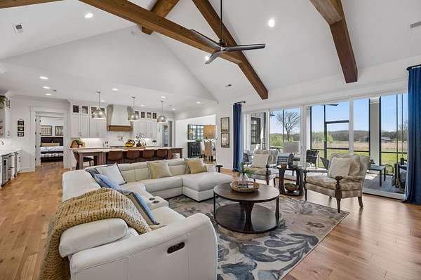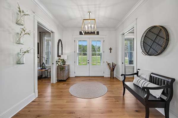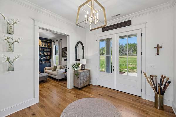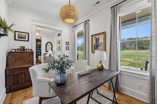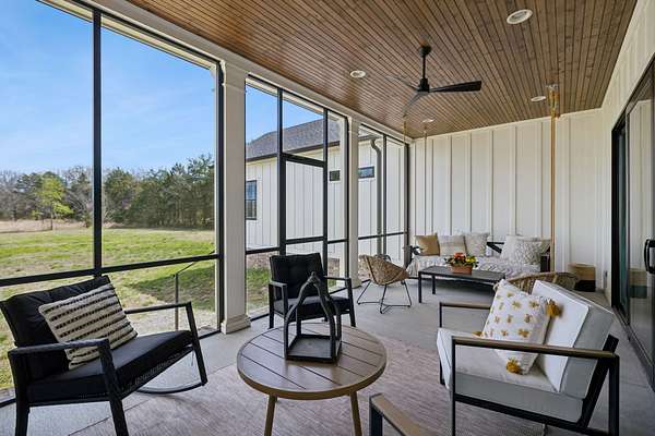 Welcome to a truly exceptional estate where luxury, functionality & breathtaking design come together on 5.05 private acres. This stunning 3-year-old home offers an unparalleled living experience, complete w/beautifully appointed in-law quarters on the main level featuring a private bedroom, full bath, den & kitchenette—perfect for multi-generational living or guests. From the moment you step in, you’ll be captivated by the impeccable décor & thoughtful details throughout. The heart of the home is the expansive kitchen, den & breakfast room designed for both everyday living & entertaining.Enjoy a large island, pull out beverage drawers, built-in ice maker, wine fridge, farmhouse sink, pot filler, dishwasher, gas cooktop w/oven—all complemented by gorgeous Quartzite countertops & tile backsplash. Just beyond, a show-stopping butler’s pantry offers a commercial refrigerator, 2nd dishwasher~oven~sink & a microwave, warming drawer & abundant storage w/ladder for high reaches. Custom built-ins are featured throughout the home, including an entire hallway of thoughtfully designed storage w/ladder access. The primary suite is a private retreat, boasting a spa-like bath w/soaking tub, an oversized walk-in shower w/smart temp control & 2 vanities. The dream closet has extensive built-ins & a quartz-topped island, creating both beauty and functionality. The main level also includes a library w/floor-to-ceiling shelves w/ladder, a beautifully designed home office, 2 additional bedrooms, ea. w/attached baths, along with the in-law suite—making this home as practical as it is luxurious. The laundry room is next-level w/extensive cabinetry & workspace! Upstairs, you’ll find a sitting area, bonus rm and an additional flex space/potential 5th bedroom & beautiful full bath. Step outside to a screened-in porch overlooking your acreage.Home also has a 3 car garage! Every inch of this home has been carefully curated w/high-end touches.This is more than a home, it's a life style!