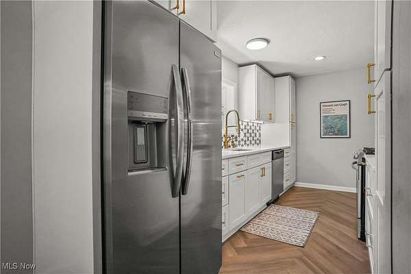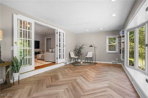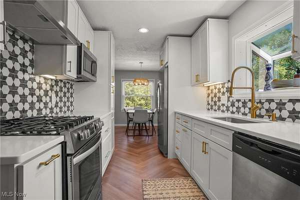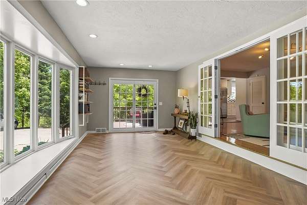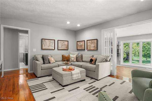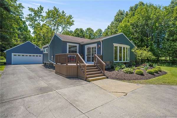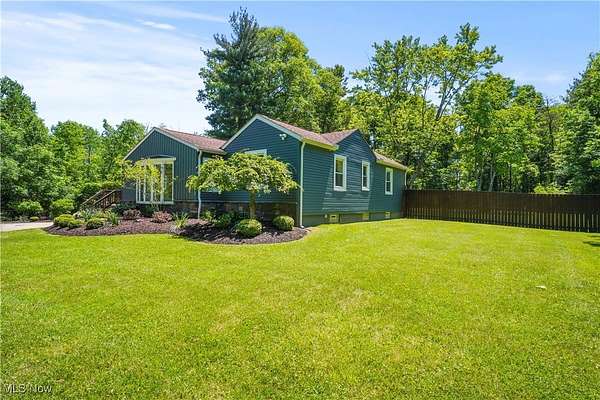 Now you have an incredible opportunity to have your own private oasis in Hudson! This charming, ranch home, nestled on 5 ACRES, offers a perfect blend of private tranquility & convenience. Minutes from historic downtown Hudson & easily accessible via Route 8/Turnpike. Enjoy the ease of being connected to public water & sewer. Home has a lovely front deck that serves as a peaceful retreat, offering serene views of the private, wooded lot. You may even spot a few deer! New stamped concrete patio ('23) off covered back porch, leading to spacious yard, fully enclosed by new privacy fence ('21)-perfect for outdoor relaxation/entertaining. New vinyl & stone siding ('20) on home & oversized 2+ car garage (featuring a new garage door/opener '21), this home shines from the outside in. The garage also includes a loft for extra storage or workspace. Step inside & feel the warmth & openness of this stunning home. Sunroom (also perfect as an office, playroom, or even exercise area) features floor-to-ceiling windows, offering stunning views of the wooded lot, along with brand new LVT Herringbone flooring. Just through the French doors, you'll find a cozy living room w/ beautiful, low-maintenance gas fireplace & refinished hardwood floors ('20). The eat-in kitchen is an entertainer's dream, with new LVT Herringbone floors, a breakfast bar, fully remodeled in '23. Enjoy quartz countertops, shaker-style cabinets w/ under-cabinet lighting, stainless steel appliances, & tile backsplash. Primary bedroom is spacious w/ 2 closets, & the additional bedrooms are both generously sized w/ beautiful hardwood floors. Standout main floor bathroom was completely remodeled in '22, offering modern style & comfort. The basement has a half bath in laundry room, & large, carpeted rec area-perfect for recreation/entertaining. Loads of storage! New in '23-25: sump pump, Front Door, Kitchen Window, rock beds in landscaping, chimney repaired. New furnace/central air ('20).