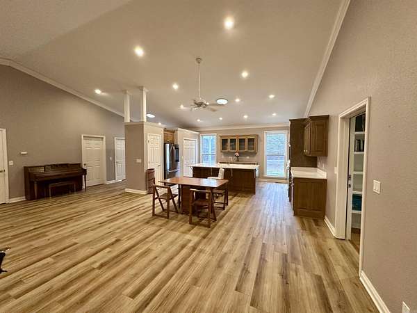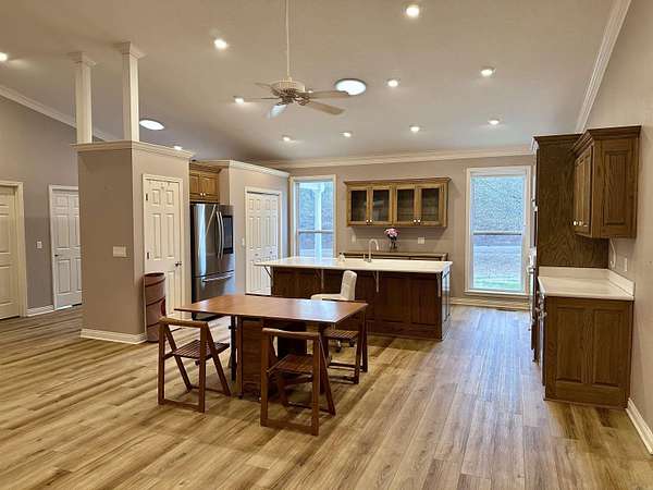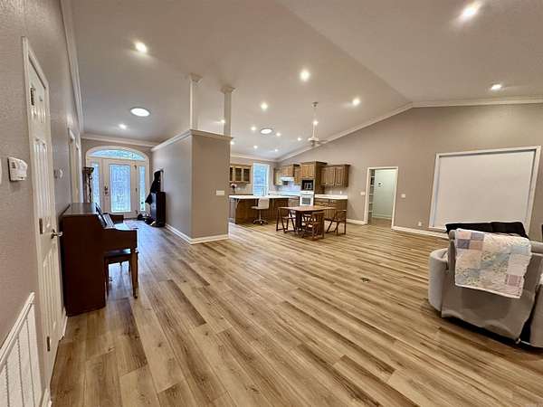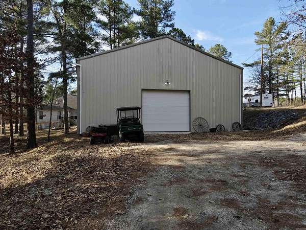 Located on nearly 3 acres in the desirable Brookhill area, 780 Brookhill Ranch Road offers privacy just minutes from the Hot Springs Village gates. This 2008 custom-built home features an open floor plan with vaulted ceilings and significant natural light from large windows and sun tubes. The interior is updated with new Green Guard Gold certified waterproof LVP flooring throughout. The kitchen includes custom cabinetry, ample workspace, and a large pantry, while the primary suite is designed with a functional office nook and a walk-in shower. Additional living space includes a heated and cooled sunroom for year-round use. A standout feature of the property is the 60x40 detached shop with 6" thick concrete floor. This 3200 sq ft versatile building includes a partially finished, 20x40 loft equipped with full bathroom and washer hookup, making it ideal for a workshop or hobby space. The shop has an additional half bath on main level and has a heated/cooled area. This property efficiently combines a well-maintained residence with substantial utility and acreage.