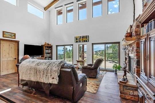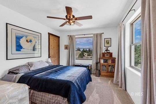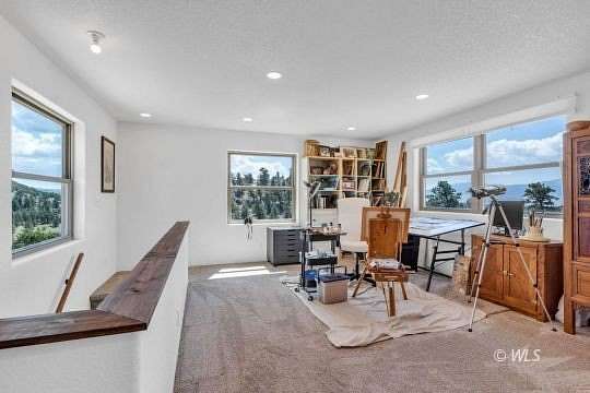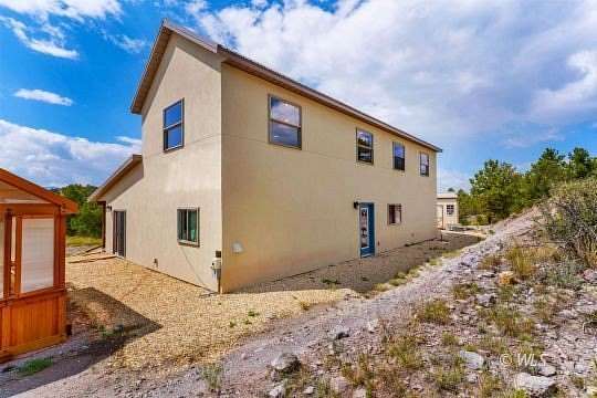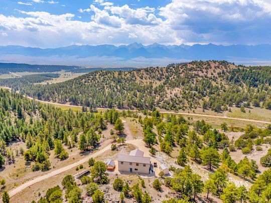 Completed in 2024, this extraordinary 36.17-acre retreat in the Wakefield Hills Sub of Custer County, Colorado, was envisioned and designed by an artist to harmonize with its surroundings. Perched atop a hill, the home offers ever-changing vistas of the Sangre de Cristo Mountains, framed by sculptural rock outcroppings and skies that come alive at night with a dazzling Milky Way. Inside, light cascades through abundant windows and soars to cathedral ceilings, illuminating the open living, dining, and kitchen areas, where a propane fireplace warms the living room. The main level hosts a serene primary suite with a Japanese-inspired bath, featuring a round soaking tub and separate shower. A nearby laundry room with an integrated half bath adds convenience. Upstairs, a loft unfolds as both art studio and entertainment space, complemented by a guest bedroom and full bath. Throughout, commissioned artistic details lend individuality and soul. Powered by solar and designed for harmony with the land, the home also offers an attached oversized garage with ATV entrance, greenhouse, and storage shed. This is more than a home; it's a canvas for living amidst nature, wildlife, and endless sky.