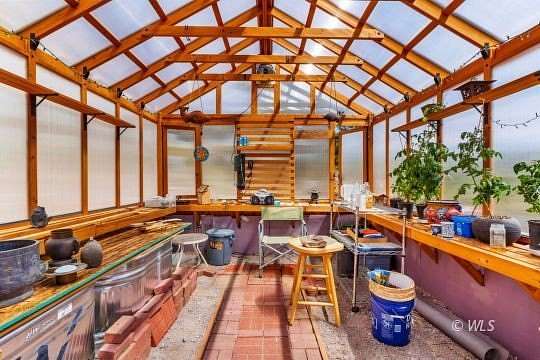 - All Year Access, Gutters & Downspouts, Out Buildings, Partial Landscape, Trees, View of Mountains, Work Shop