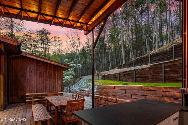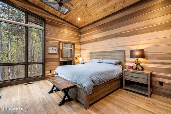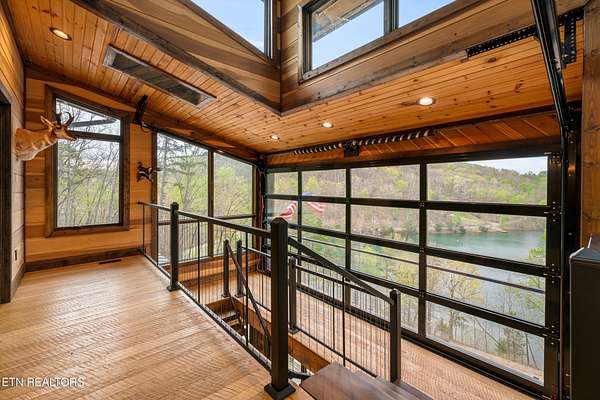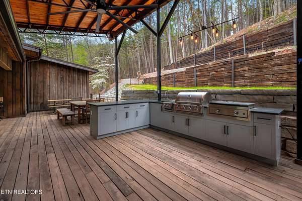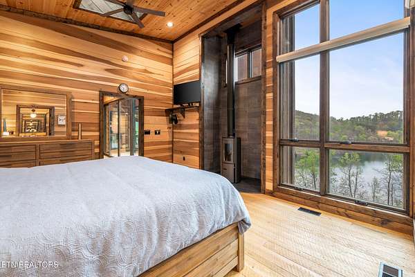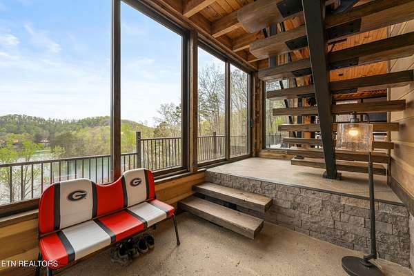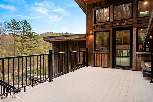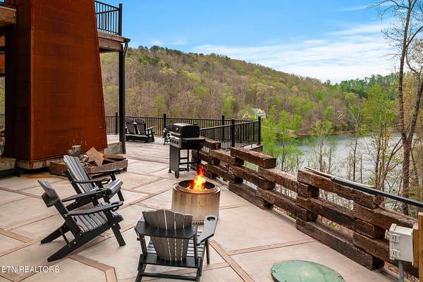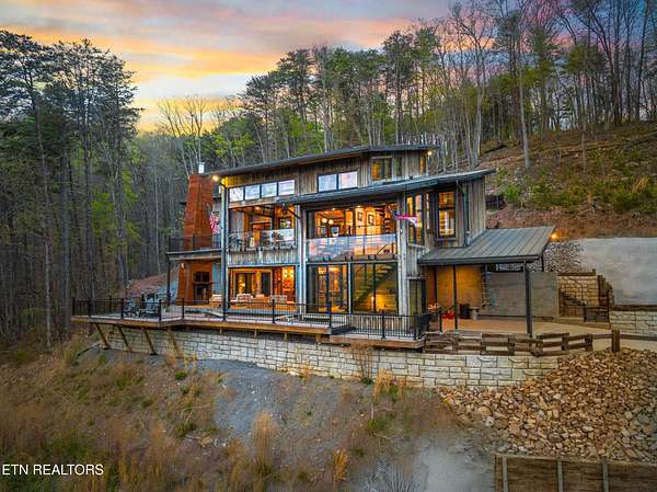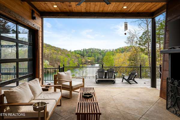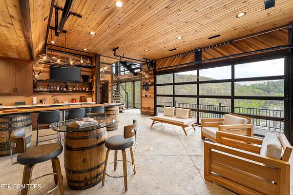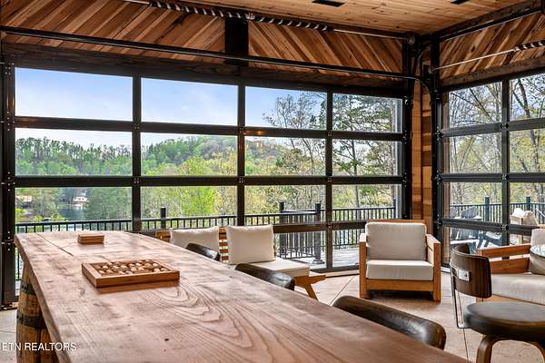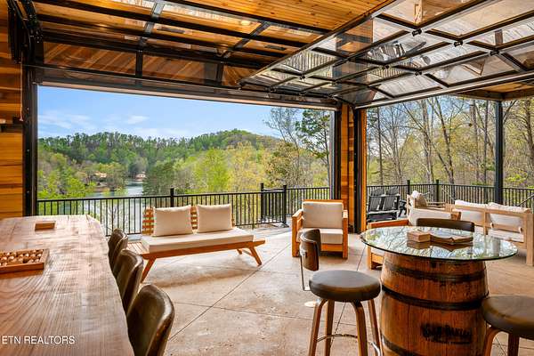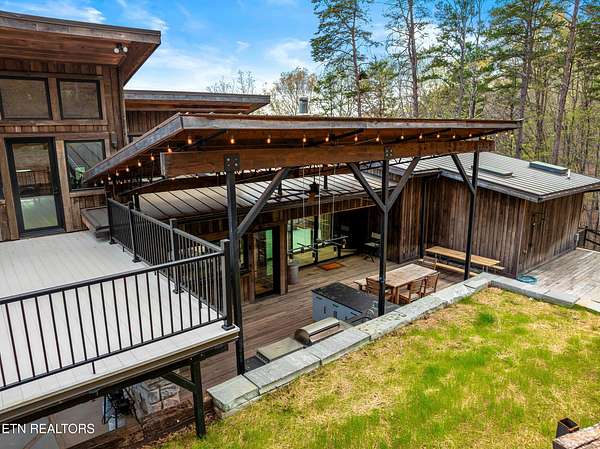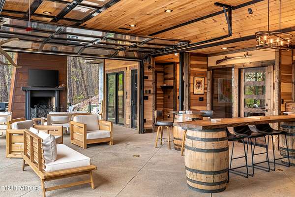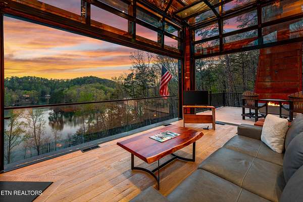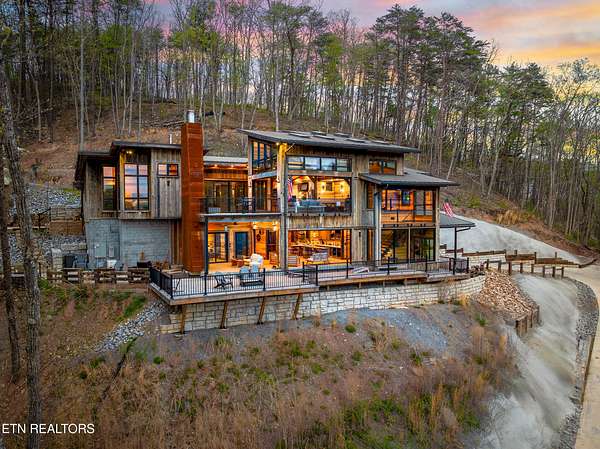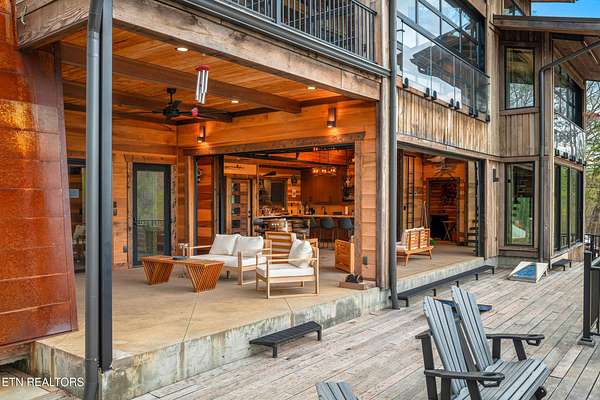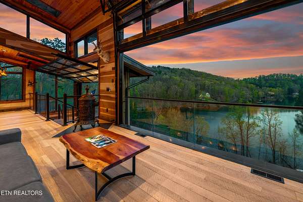 Discover a lakeside sanctuary in Madisonville that redefines the concept of custom craftsmanship. This one-of-a-kind estate is a masterwork of organic architecture, where the soul of the home is literally rooted in the land; much of the timber used in its construction was milled directly on-site. Inside, the aesthetic is a warm symphony of natural wood, featuring expansive White Oak flooring, elegant Poplar wall paneling, and soaring Northern White Pine ceilings. Even the hidden details are elevated, with every closet lined in fragrant Eastern Cedar, ensuring that luxury is felt in every corner of the property. Designed specifically for the ultimate entertainer, the home's layout ensures the incredible lake and mountain views are never out of sight. The heart of the house is a massive gourmet kitchen with high-end finishes that flows seamlessly into the living areas, but the true showstopper is the innovative outdoor living space. The massive Red Oak decks feature a full wet bar and a revolutionary system of automatic windows that can be lowered during cooler months, allowing you to enjoy the fresh air and scenery year-round without sacrificing comfort. Whether you are hosting a tasting in the full-scale wine cellar or relaxing in the versatile loft area, the home feels intimately connected to its environment. The primary suite serves as a private escape, offering direct access to the deck where you can unwind by the outdoor fireplace while the sun sets over the water. From the rare reverse batten board exterior crafted from treated White Oak to the windows that wrap around every room, every inch of this property was designed to celebrate its unique location. This is more than just a party pad; it is a handcrafted retreat that offers a lifestyle of unparalleled beauty and sophistication.