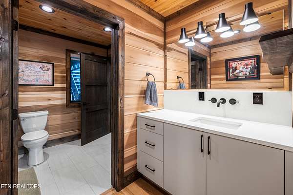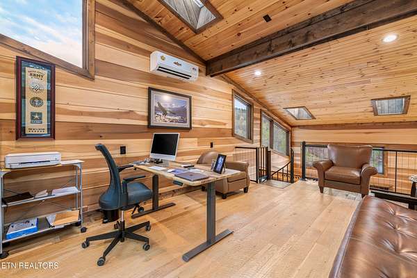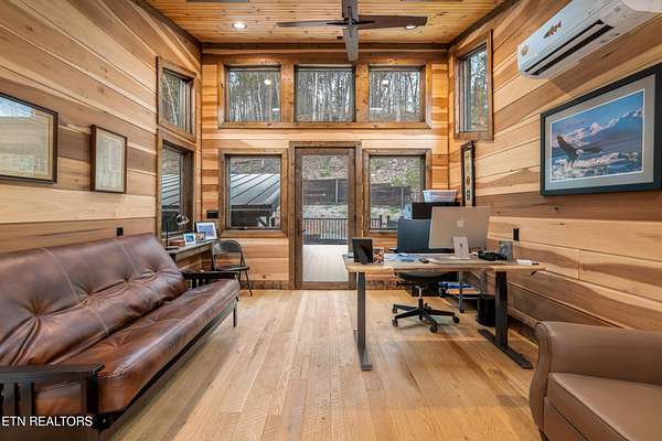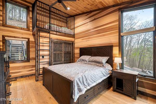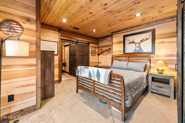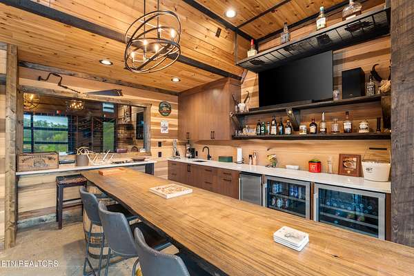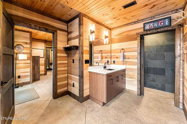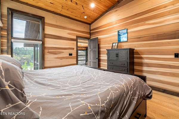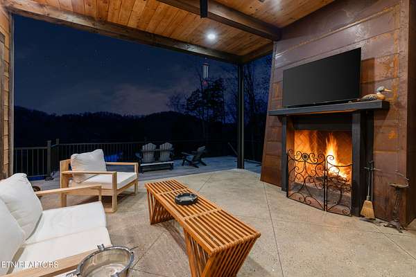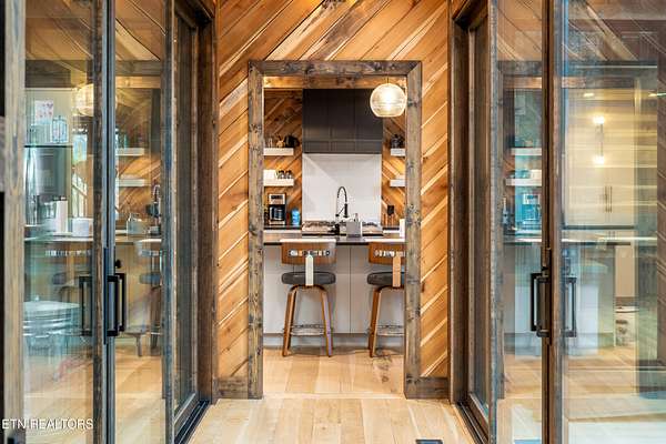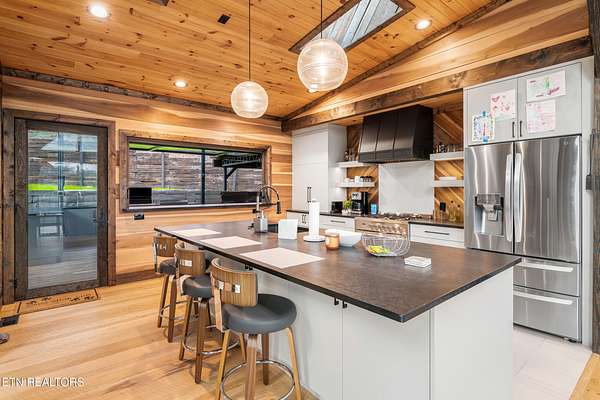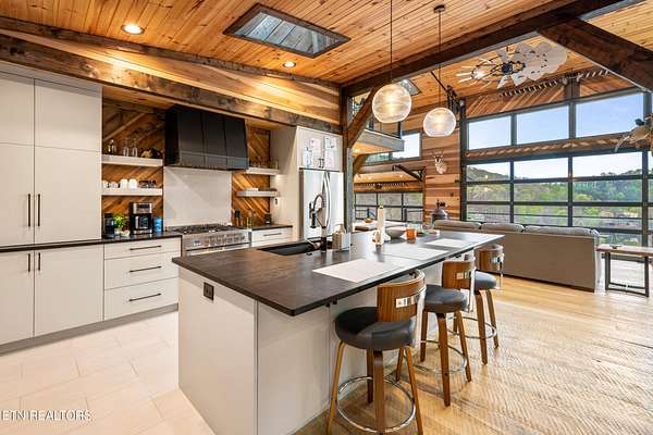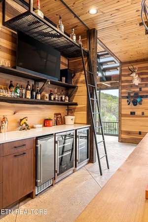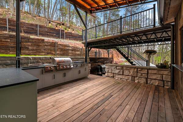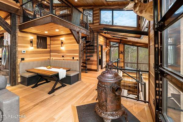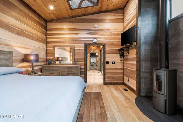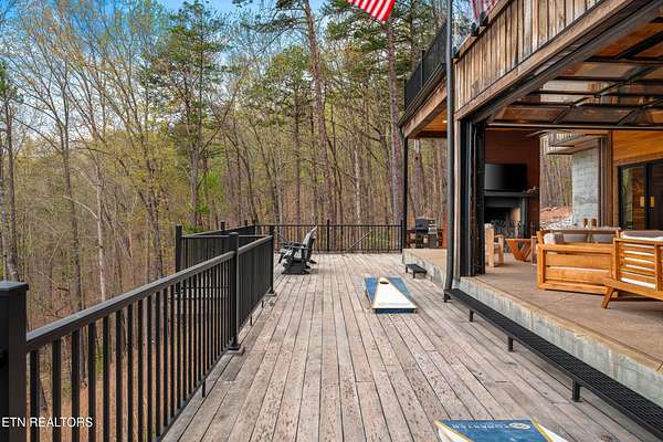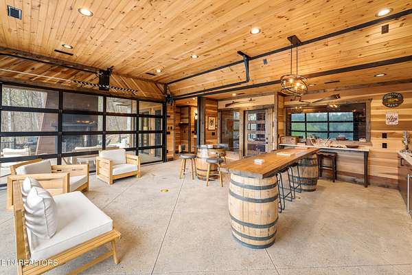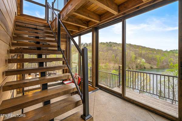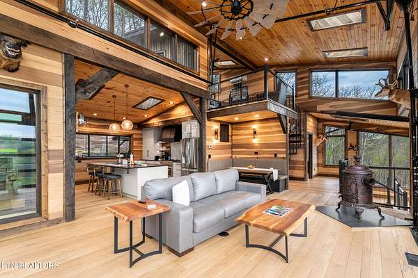 Discover a lakeside sanctuary in Madisonville that redefines the concept of custom craftsmanship. This one-of-a-kind estate is a masterwork of organic architecture, where the soul of the home is literally rooted in the land; much of the timber used in its construction was milled directly on-site. Inside, the aesthetic is a warm symphony of natural wood, featuring expansive White Oak flooring, elegant Poplar wall paneling, and soaring Northern White Pine ceilings. Even the hidden details are elevated, with every closet lined in fragrant Eastern Cedar, ensuring that luxury is felt in every corner of the property. Designed specifically for the ultimate entertainer, the home's layout ensures the incredible lake and mountain views are never out of sight. The heart of the house is a massive gourmet kitchen with high-end finishes that flows seamlessly into the living areas, but the true showstopper is the innovative outdoor living space. The massive Red Oak decks feature a full wet bar and a revolutionary system of automatic windows that can be lowered during cooler months, allowing you to enjoy the fresh air and scenery year-round without sacrificing comfort. Whether you are hosting a tasting in the full-scale wine cellar or relaxing in the versatile loft area, the home feels intimately connected to its environment. The primary suite serves as a private escape, offering direct access to the deck where you can unwind by the outdoor fireplace while the sun sets over the water. From the rare reverse batten board exterior crafted from treated White Oak to the windows that wrap around every room, every inch of this property was designed to celebrate its unique location. This is more than just a party pad; it is a handcrafted retreat that offers a lifestyle of unparalleled beauty and sophistication.
