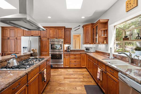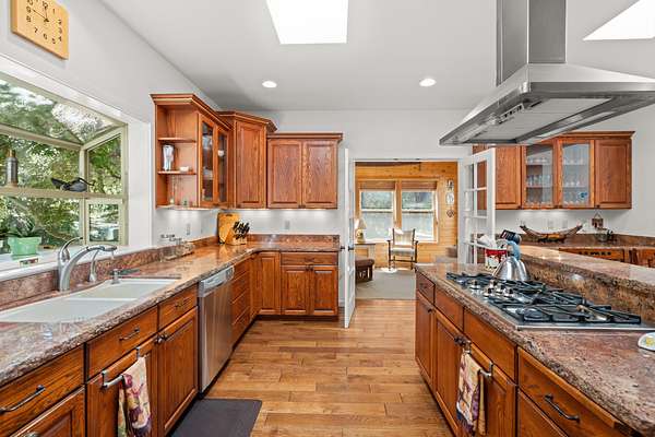 Situated at the end of a private maintained road, this turn-key home is ready for those seeking peace, privacy and a tranquil setting. Enjoy 60 acres of mixed marketable timber, backing to BLM land, and just minutes from downtown Grants Pass. This one-owner estate offers a spacious chef's kitchen with granite countertops, gas cooktop, double oven, and abundant storage. The first-floor primary suite bathroom includes a warming dryer, soaking tub, and heated floors. This natural light-filled home features new interior paint and plenty of room to entertain while providing guests with comfort. The large 2-car garage includes a separate workshop with heating & A/C. In addition, it has seasonal creeks, raised garden beds, fruit trees, and plenty of room for your outdoor activities. Sit on your deck or enjoy relaxing in the hot tub while taking in the surrounding beauty and silence as you have no neighbors on this side of the community. This true Oregon sanctuary is ready for its new owner!