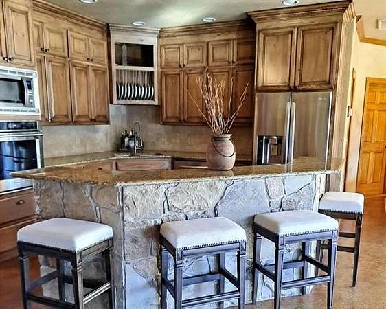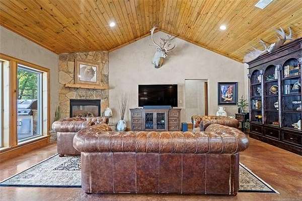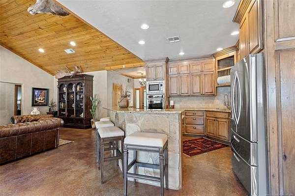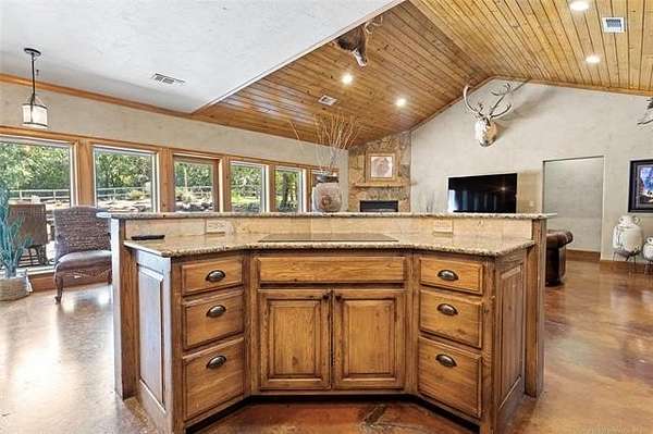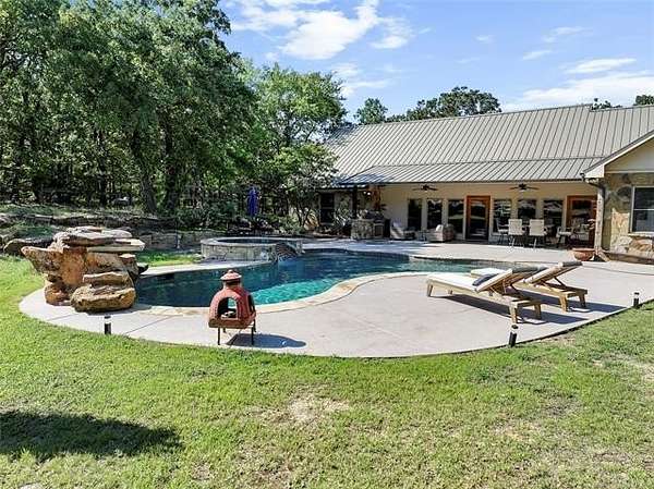 Custom Rock Home - Heated Saltwater Pool - Massive Shop - 10.54 Acres - Plainview Schools This Beauty is Located just minutes from Lake Murray, Plainview School District, this one-of-a-kind custom retreat offers the perfect blend of rustic elegance, luxury amenities, and serene acreage living. This remarkable custom-built rock home welcomes you with a full-length front porch and stunning craftsmanship throughout. Featuring 4 bedrooms, 2.5 baths, a private office. INTERIOR FEATURES Soaring 20' cedar-plank vaulted ceilings paired with 10' walls and 6" solid oak crown molding Expansive custom double-pane windows flows into the resort backyard and allows natural light Open concept living/kitchen with premium finishes Gourmet kitchen with granite countertops, tumbled stone accents, large island, and built-in KitchenAid SS appliances ClimateMaster Geothermal Heat Pump for top-tier energy efficiency Central vacuum system Cedar-lined private office with French doors and built-in gun safe. Master en-suite feature's: Steam shower, Deep jacuzzi soaking tub Large walk-in closet Direct access to an oversized mud/laundry room with double sinks & Toto toilets. OUTDOOR OASIS Step outside to your own resort-style getaway. The custom-designed backyard is a true showstopper featuring: 10-foot inground heated saltwater gunite diving pool, waterfall, Hot tub/sauna retreat with Remote-controlled waterfall feature. (New heater, pump, filter & lighting) Outdoor kitchen with gas BBQ & built-in refrigerator Rainbird sprinkler system - French drains GARAGE & SHOP Oversized 2-car attached garage with storage, floored attic space, and private climate-controlled room Massive 3,600 sq.ft. shop equipped with: 3- 10' overhead doors, Electric, water & bathroom. North end is Partial insulation, Climate-controlled reloading/safe room with steel vault door. 10.54 private acres, Private water well, On-site propane, 50-year hail-resistant metal roof, Custom stucco & stone exterior