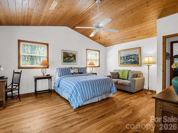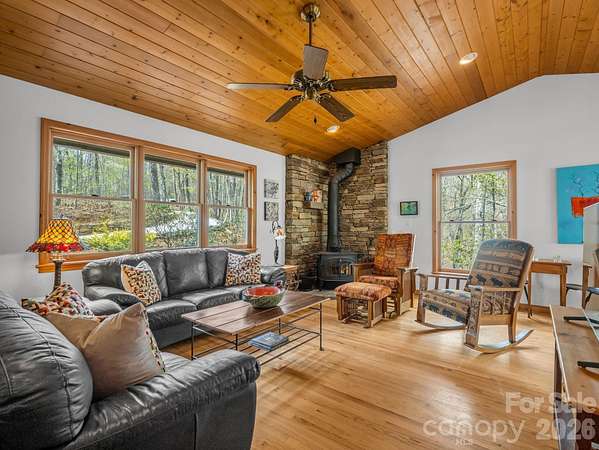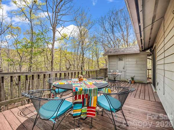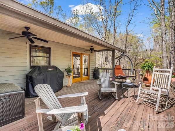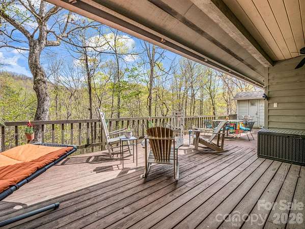 FULLY FURNISHED RANCH | PRIVATE SAUNA | 2.1 WOODED ACRES Stop searching and start living! Tucked into the serene Rixhaven community in the Blue Ridge Foothills, this charming ranch is the ultimate fully furnished mountain sanctuary; simply unlock the door and settle in-every piece of furniture stays! This home offers main-level living with warm interiors, including a large living room perfect for gatherings, rich wood ceilings, and a cozy wood-burning stove. The delightful kitchen boasts ample counter and storage space, features a breakfast bar, and flows seamlessly into a dining area. The main level is completed by the Primary Suite, which features French doors that open directly to the deck and sauna, and an ensuite bath, as well as a second full bedroom and bath. The expansive Canopy Deck, nestled among the trees, serves as an outdoor oasis designed for every season, offering shady summer afternoons under the forest canopy and mountain views that reveal themselves every winter. Unwind on the covered front porch with a swing and rocking chairs during quiet moments. For the ultimate relaxation, rejuvenate year-round in the private outdoor sauna surrounded by the forest. The ranch provides excellent additional space in the bright walk-out basement, which includes a third large bedroom and full bath. This property offers privacy on 2+ wooded acres, yet maintains convenience, as it is only ~7 miles from the dining and shops of Saluda with quick I-26 access. The mountains are calling-schedule your private viewing today!