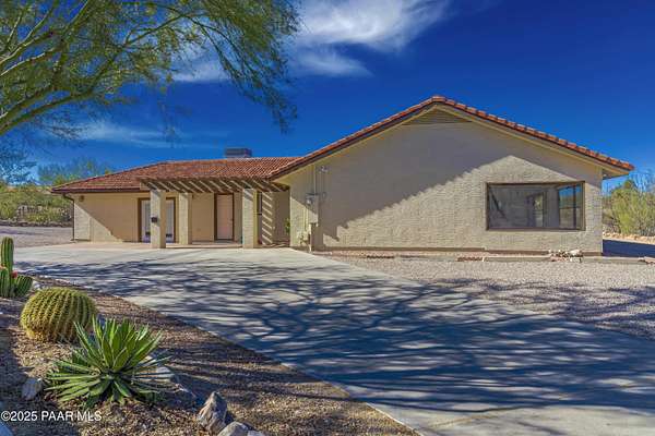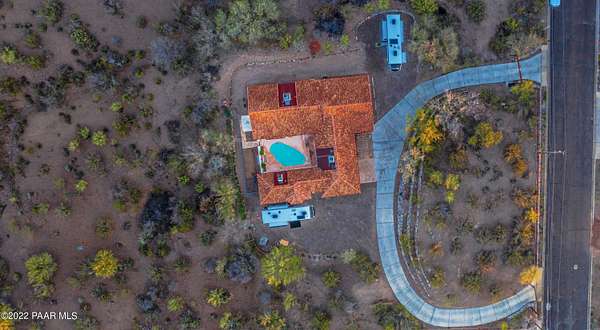 This amazing property has it all and some!! Almost 5 acres with plenty of room for HORSES and toys. Right off a paved road in a beautiful, quiet Wickenburg neighborhood with fantastic mountain views. GUEST HOUSE and a Swimming pool!!!Circle driveway makes pulling and parking RV's and horse trailers a breeze. Large 2600+ ft home has had too many upgrades to count. Kitchen and garage were both recently remodeled. Kitchen boasts beautiful custom cabinets with pull outs, induction stove top, dual built-in ovens with all matching appliances. Garage was upgraded into the perfect mancave with a 220 outlet and its own thermostat. Living area has charming wood and rock accents throughout. Master bedroom and bathroom are both spacious and include a large, jetted tub. 2 min to Safeway, 3 to downtown