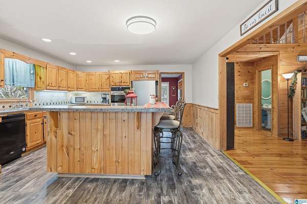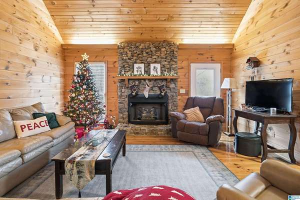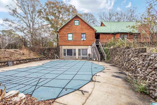 Welcome to your dream home nestled on a generous parcel of land in Talladega! This enchanting log cabin-style residence features three spacious bedrooms, each with its own private bathroom, ensuring comfort and privacy. Stunning pine floors and an open-concept design welcome you inside, with a beautiful kitchen perfect for entertaining. A catwalk connects the two upstairs bedrooms, overlooking the cozy living room.Additional highlights include a separate mother-in-law suite with a bedroom, loft area, living space, kitchen, and laundry for guest comfort. The finished basement provides an ideal space for entertaining friends and family.Step outside to your private oasis, complete with an inviting in-ground pool and ample acreage for outdoor activities. A barn offers extra storage or the potential for a hobby farm. Don't miss this exceptional opportunity for country living with modern amenities. Schedule your showing today!
