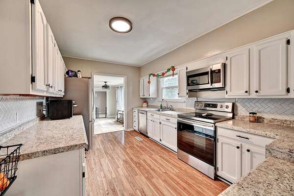 - Dishwasher, Dryer, Electric Range, Microwave, Refrigerator, Stainless Steel Appliance(s), Washer