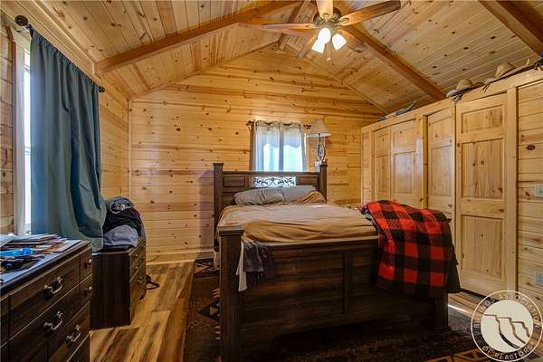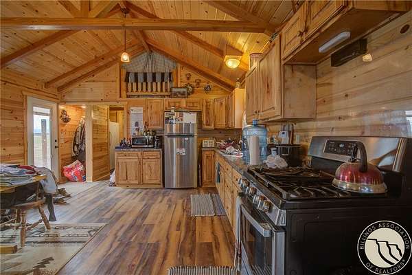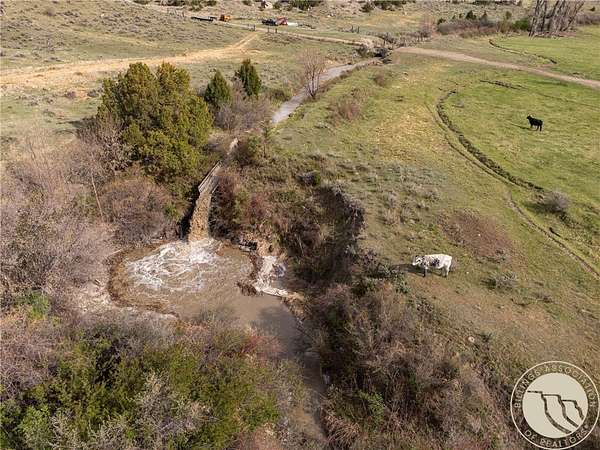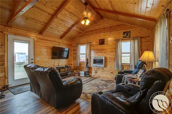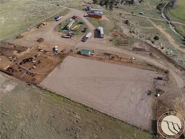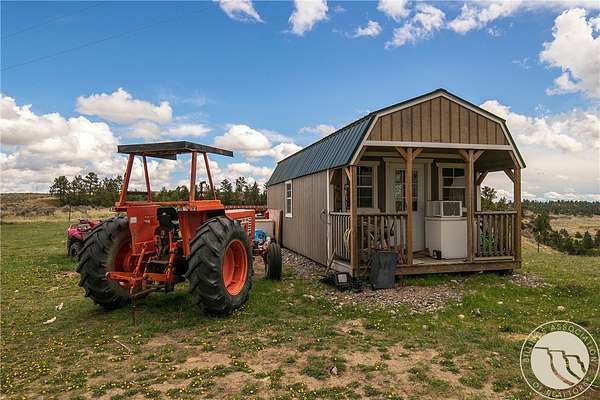 The wide stretch of nearly seventy acres opens with a sense of calm as the land rises and falls toward the distant river. A welded pipe arena sits ready for animals to move through it, with a working pen and holding pen nearby. A tack room and mini barn offer useful places to store gear and supplies. The cabin at the heart of the property brings a warm glow with its knotty pine interior. A bedroom sits on the main level, while a sleeping loft adds extra space. Fields along the lower edge of the property are irrigated with water from the Custer Waco Ditch Rights, and fencing surrounds the acreage for managing livestock. From the rim top, the view stretches over the land below and toward the Yellowstone River. An old train tunnel, long unused, rests quietly on the property. Access to the interstate is nearby, and Billings is about an hour away. The setting offers room to work, explore, and enjoy the rhythm of open land.