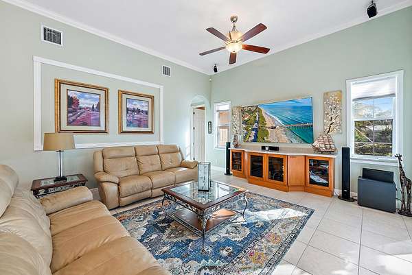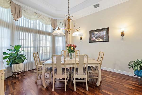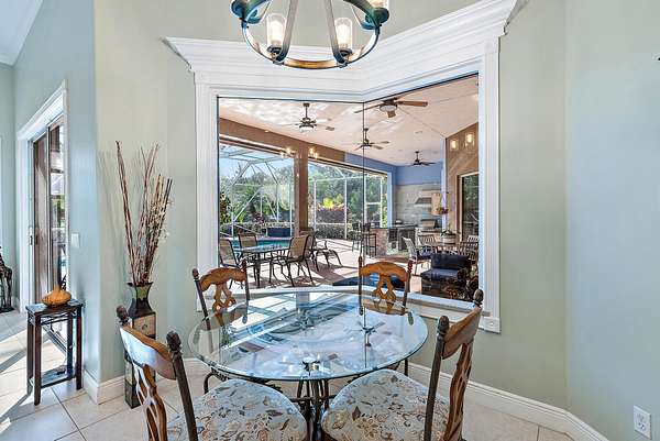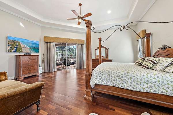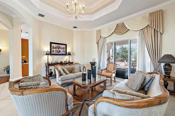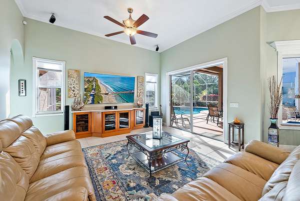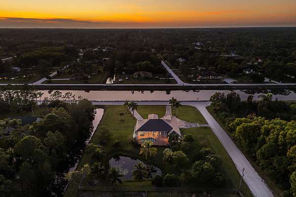 Nestled on 2.5 private acres, this beautifully updated estate blends modern comfort with peaceful outdoor living. The roof was replaced (2023), 4-car garage, & three driveways offer style & convenience. Inside, you'll find 4 spacious bedrooms, a flex room/office, & a luxurious primary suite with coffered ceilings, wood floors, dual sinks, a massive dual-entry shower, & a freestanding tub. The chef's kitchen, remodeled in 2021, features Quartzite counters, a large island, wine bar, steam oven, built-in coffee maker, & stainless-steel appliances. Step outside to your entertainer's paradise -- a MASSIVE screened-in pool (new pump installed - 2022), covered lounge, & a fully equipped outdoor kitchen with multiple grills, cooktops, sink, refrigerator, freezer & microwave. The fenced yard & backyard pond-fed sprinkler system complete this serene retreat. Newer AC & water heater. This stunning home offers the perfect mix of space, luxury & Florida lifestyle don't miss it!