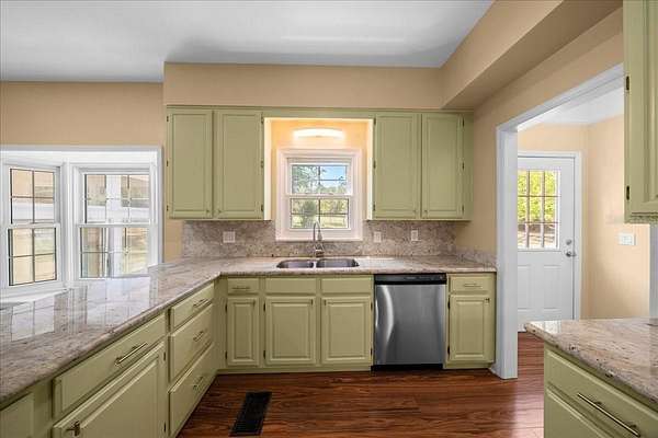 The 4,215 sq ft home has been thoughtfully updated and offers a flexible layout with 6 bedrooms and 4.5 bathrooms, ideal for multi-generational living or hosting guests. Inside, you’ll find hardwood flooring, stained glass accents, and a wood-burning fireplace that add warmth and character. The kitchen is functional and well laid out with a new dishwasher, hood vent, stove, and dual basin sink, ready for customization to your personal style.