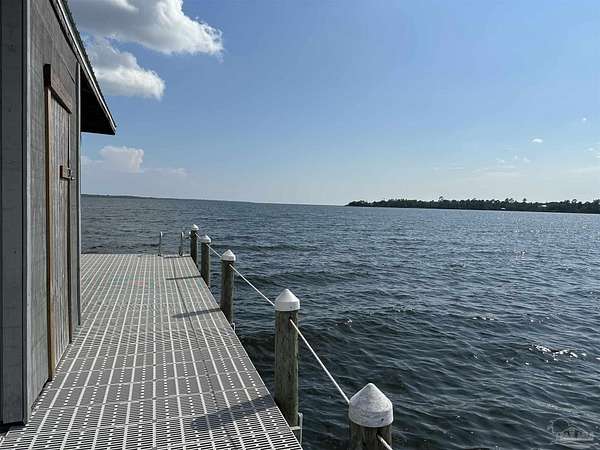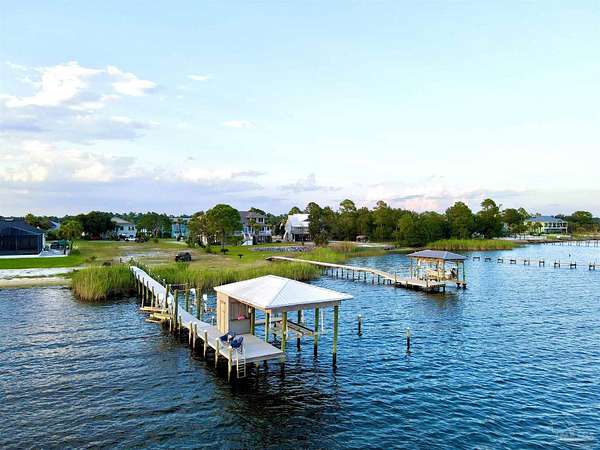 NEW PRICE on this fantastic BLACKWATER BAY FRONT LOT with FLO THRU DOCK, enclosed BOATHOUSE (with water, electricity, outdoor shower & fish cleaning station), and 5 BOAT and JET SKI LIFTS (one is a 10,000 pound lift!) is ready for your dream waterfront home! This deep lot is located in the prestigious Petersen Point neighborhood, full of executive homes. Unlike many vacant lots, this one also already has an irrigation WELL saving you $$ on well drilling. The unobstructed SUNSET VIEWS from your dock over the OPEN WATER are inspirational and the fishing in this area is great also! The sawgrass at the water line helps protect your property from erosion and provides a great fish habitat. The survey has already been done and ready for its new owners along with a GEO SURVEY and perc test that will save you even more money when preparing to build. Owner says this was the only dock left standing after Hurricane Sally so it was well worth the extra cost of materials, including stainless steel screws for durability! Finally, the owners have already installed 200 AMP underground power that is currently used to power the dock but is ready to light up your new home as well. Located right around the corner from Interstate 10 access, you can be in Pensacola in no time or any destination east or west, yet you feel like you are "a world away" once you arrive back home. The best of both worlds! There are very few lots in this neighborhood left, and NONE with so many "bells and whistles" ready to go for construction of your waterfront dream home, so grab this one while you can!