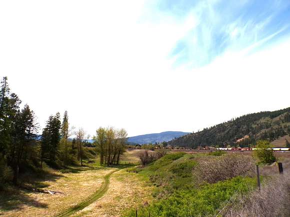 Hwy 395 one mile East of Kettle Falls on South side of the road. Cross the railroad tracks, take an immediate right and hug the track as you are going west down the gravel road. Turn left at the driveway with the big tree and take the immediate right after you go through the fence. Follow the gravel road on the south side of the fence, to the RE signs.