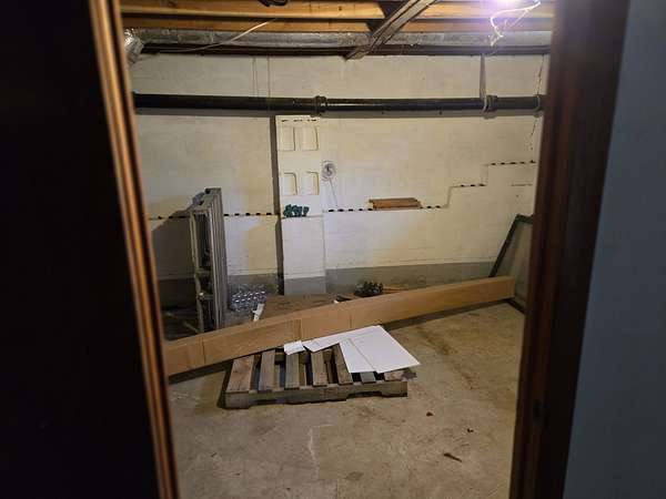 Est $1,781/moBrick home on 3.98 acres nestled in the trees for privacy with large yard. Newly painted and a kitchen cabinet makeover. Unfinished basement has wall mount gas heater a finished bath and exterior door and also utility hookups with a room mostly finished being used for BDR. Wood burning fireplace in Den. Just outside city limits with water and gas at the road could possibly be divided up to uitilize the other acres.