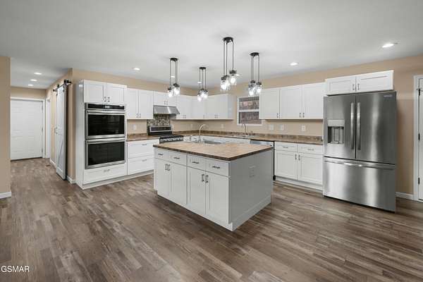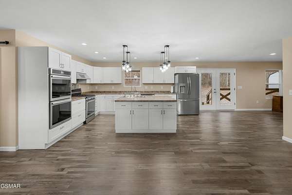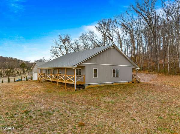 Viewing this custom, recently built farmhouse-style home is truly a treat. From the porch or nearly any window in the house, the breathtaking mountain and French Broad River views will stop you in your tracks. Situated on over 3.5 acres, this property offers full-length covered front and back porches-perfect for relaxing and taking in the scenery. The home features an attached two-car garage with additional storage space, along with two separate storage buildings ideal for tools, crafts, or play areas. An encapsulated crawlspace provides peace of mind and added efficiency. Inside, you'll find an open-concept floor plan with a spacious living room and a stunning kitchen designed for both function and entertaining. The kitchen boasts custom cabinetry, a large center island, farmhouse sink, gas (propane) range, two wall ovens (one with an air fryer), a garbage disposal, and a walk-in pantry with a charming barn door. The dining area easily accommodates a large table, making it perfect for gatherings. This home offers exceptional convenience with two laundry areas-one near the bedrooms and another near the garage entrance. Adjacent to the garage is a versatile space ideal for a freezer or additional storage, located near the pantry and a full bathroom. A room just off the living room, complete with a large closet but no window, works perfectly as a home office or playroom. Down the hall are three bedrooms and another full bath. The spacious primary suite features two oversized walk-in closets and a private bath with a tiled walk-in shower. One bedroom has been used as a home office and includes sound-insulated walls, ideal for quiet work-from-home days. Additional highlights include a total of three full bathrooms, a gas (propane) tankless water heater providing endless hot water, custom-built cabinetry throughout the kitchen and baths, and Spectrum high-speed internet availability. The sellers report the highest monthly electric bill-including water-was just $275. This exceptional property combines thoughtful design, modern farmhouse charm, and unforgettable views in a truly special setting.