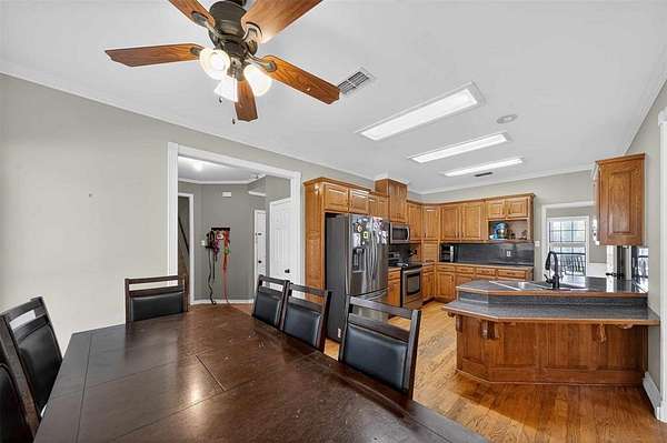 Discover 7.94 beautiful acres in highly sought-after Edgewood ISD, featuring a spacious 5-bedroom, 4-bath home with 2,428square feet of thoughtful design and custom craftsmanship. This inviting home showcases beautiful wood specialty ceilings, rich wood flooring, quality wood cabinetry, and a warm, welcoming fireplace--all complemented by abundant natural lighting throughout. Everywhere you look, you'll find little updated extras that make this property feel both elevated and comfortable. The generous floor plan offers ideal flexibility for a large family, multigenerational living, or anyone who values extra space. Outside, the nearly 8-acre setting provides open pasture, mature trees, and endless opportunity--perfect for hobby farming, livestock, gardens, or building additional structures. Located just off Highway 19, this home is close enough to town for convenience yet far enough to enjoy true peace, quiet, and privacy. It's the perfect balance of rural living with everyday practicality.