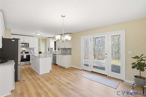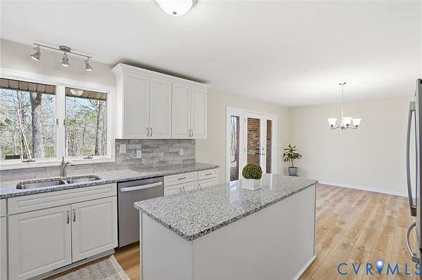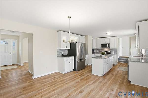 POTENTIAL IN-LAW SUITE w/5 Bedrooms !! * Gorgeous Renovated Brick Ranch with a Contemporary Flare ! 2 PRIMARY SUITES !! Spacious open layout, approximately 3,000 sq. ft, a possibility of 5 BEDROOMS!!!, and 3 Full Baths !, The floor plan is functional with an easy flow...including a large Entrance Foyer, HUGE Living Room w/NEW LVT Flooring, Bay Window, and Beamed Ceiling, Fantastic NEW Kitchen w/ample White Cabinets, Granite Countertops, Island, Stainless Steel Appliances (Refrig., Flat Top Stove, Microwave, & Dishwasher), Eat-In area w/a door leading to the Concrete Patio and Detached Deck. The huge Laundry Room (off the kitchen) has a washer/dryer hookup, built in cabinets with counter ideal for folding & sorting, and built in shelving ! There are 4 good sized Bedrooms on one side of the house including a wonderful Primary Bedroom w/New plush carpet, ceiling fan, and attached full bath. The Primary Bath includes 2 separate vanities, walk-in closet & large shower. A 2nd Full Bath w/tub enclosure, double vanity and LVT (marble ~look flooring)~ accommodates 3 other bedrooms on this side of the house. HUGE Family Room w/Large Brick (White) Fireplace with a Woodstove. This room also includes great Built-In Shelving, Ceiling Fan, and Stunning Windows (w/a Sliding Glass Dr) along the front of the house leading to a large deck where you can enjoy a pretty view of your property ! There is a bonus room / OR functionally a 5th BEDROOM w/the 3rd Full Bath (w/Shower) Renovated Bathrooms w/ new toilets, vanities, fixtures, lighting, shower and/or tub enclosures with quality workmanship ! HIGHLIGHTS INCLUDE: 2.5 Car Oversized Garage (w/a depth that could hold 4 cars ! + Storage), NEW ROOF, Anderson Windows Throughout, NEW Plumbing, NEW Vapor Barrier, "newer" Heat Pump, NEW Hot Water Heater, Rear Patio, Deck off Family Room + Separate Det. Deck in Rear, All this located on 2.21 ACRES Check out the attached VIDEO !!