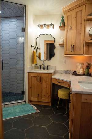 - Bookcases, Ceiling Fan(s), Double Vanity, Dry Bar, Entrance Foyer, Kitchen Island, Natural Woodwork, Open Floorplan, Pantry, Quartz Counters, Recessed Lighting, Soaking Tub, Walk-In Closet(s)