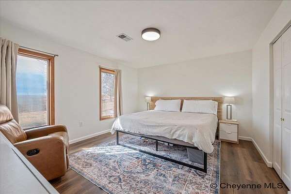 Room to Roam. Views to Love. Welcome to 7815 Cattlemans Drive. Discover your close-in rural retreat in the sought-after Quarter Circle Five Subdivision! Nestled on 4.25 acres, this freshly painted 4-bedroom, 4-bathroom home offers the perfect blend of wide-open space and everyday comfort and just minutes from Cheyenne. Step inside to an inviting, informal layout featuring stylish luxury vinyl plank flooring, abundant natural light, and central air conditioning for year-round comfort. The spacious design includes a fully finished walk-out basement, ideal for entertaining, relaxing, or creating the perfect guest or recreation space. Outdoors, you'll find everything you need to embrace Wyoming living at its best. Superb western views with unforgettable sunsets from your deck or patio. Mature trees with underground sprinklers providing privacy and protection from wind and sun. Horses allowed with pasture space ready to go. 20' x 16' outbuilding/shed for storage or hobbies. Plenty of room for RVs, boats, campers, and all your toys. The attached two-car garage adds convenience and efficiency to this peaceful haven. Brand new roof. Solar panels for maximizing energy efficiency. If you've been dreaming of elbow room, big skies, and the freedom of rural living, without sacrificing proximity to town, 7815 Cattlemans Drive is ready to welcome you home. Easy to Find Directions: Head north on US Interstate 25 to Horse Creek Road Exit. Turn left onto Horse Creek Road and go 4.8 miles. Turn left onto Horse Creek Lane. Turn right onto North Milliron Lane. Turn left onto Cattlemans Drive. Home is located on the right.