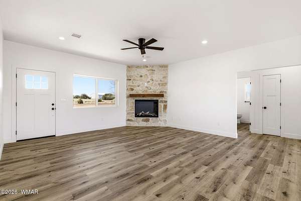 Brand new construction on 1.56 acres with breathtaking views! This 3-bedroom, 2-bath home features an open-concept layout with abundant natural light, a beautiful fireplace, and modern finishes throughout. The kitchen offers upgraded cabinetry and stylish countertops, flowing seamlessly into the living and dining areas. Enjoy a split floor plan for added privacy, with a spacious primary suite and comfortable secondary bedrooms. Step outside to take in the peaceful surroundings and incredible views. Complete with a 2-car garage and room to roam--schedule your showing today, this one won't last!