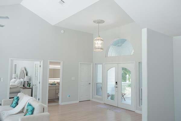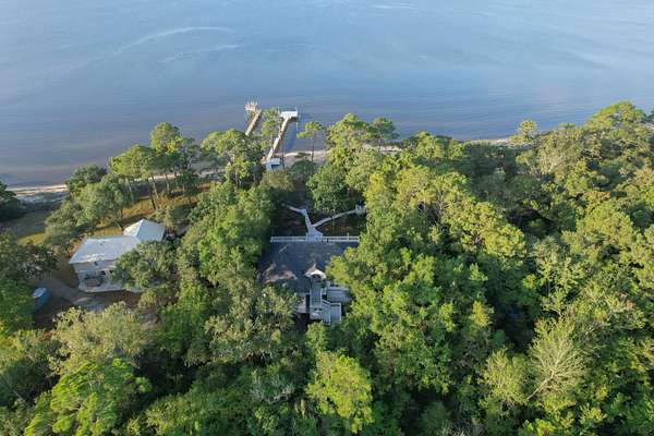 PRICE IMPROVEMENT! Rare must-see opportunity with 108 ft of waterfront and no HOA or neighborhood. Welcome to paradise on 1.56 acres of pristine Choctawhatchee Bay. Drive through the dolphin gate and discover a stunning waterfront 4 bed, 2.5 bath home featuring an open floor plan, cathedral ceilings, and hardwood floors. The kitchen with granite island, double oven, smart refrigerator, and dishwasher leads to the living area with cathedral ceilings, skylights, and a double-sided fireplace. The luxurious primary suite features bay views, vaulted ceilings, and bathroom with walk-in closet. It has a spa feel with wavy wall tiles and shower with two shower systems and mosaic niches. Enjoy your private retreat with amazing waterfront views, perfect for dolphin sunsets! The 16x62 deck wraps around the back of the home connecting the kitchen and living area with the primary suite, overlooking the bay. There are four spacious bedrooms upstairs with hardwood floors and oversized windows for amazing panoramic views. All bathrooms are tiled with custom quartz countertops and LED mirrors. The spacious downstairs boasts an oversized two-car garage, room for a gym and workshop, and additional air-conditioned room with closet. Head outside to the real showstopper: an impressive 108 feet of private bay waterfront with a sandy beach and a dock connecting to a freshwater branch flowing into the bay nestled alongside the property. The large covered open patio has an 800 lb. cargo elevator, turf zone, and immaculate views of the water perfect for grilling and entertaining. There are many seating areas including a gazebo on the dock offering views of both the bay and the Linton Spring Branch. The driveway and carport can accommodate many guests. Whether you're enjoying water excursions or relaxing at your oasis to watch beautiful sunsets and waves on your private beach, every day feels like a vacation. The Choctawhatchee Bay is renowned for it's scenic sunsets, excellent red fish, and blue crab. It provides direct access to the world-famous Crab Island and just a short drive (approximately 15 miles) away lies Destin and 30-A, known for their world-class beaches, shopping, and dining options. Minutes from your beach, you can enjoy fresh catches at Nick's Seafood Restaurant, when you're not reeling in your own catch from your private dock with two jet-ski/boat lifts (rated up to 1500 lbs). While you'll never want to leave, it also offers incredible potential as a vacation rental property while avoiding the typical neighborhood and HOA hassles. Nestled in a secluded bayfront haven surrounded by nature, this dream home offers a unique blend of peaceful private waterfront living and convenient access to Florida's Gulf Coast.