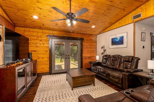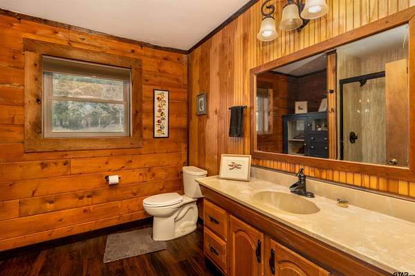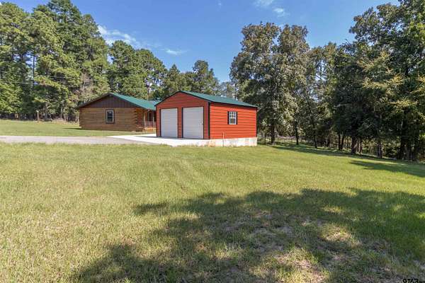 Escape to your own East Texas retreat with this beautifully updated log cabin on nearly 10 peaceful acres in Frankston. Wake up to wildlife and enjoy coffee on the porch. This 3-bedroom, 2-bath home offers the perfect blend of rustic charm and modern upgrades, surrounded by nature with deer frequently visiting the property. Step inside to find warm natural woodwork and a cozy wood-burning fireplace that creates a true cabin feel. Recent 2024 improvements include a new roof, updated plumbing, new shower, whole-home water filtration system, and foundation spray barrier—giving peace of mind for years to come. Outside, the property is fully equipped for country living and recreation, featuring a 2-car metal garage, RV cover with 50-amp hookup, storage building, and a fenced backyard with covered patio—perfect for relaxing or entertaining. The asphalt driveway and concrete walkway add convenience and curb appeal. Enjoy access to Pineywoods Lake through the community HOA, ideal for fishing, kayaking, and quiet waterfront relaxation. Located just minutes from the renowned Pine Dunes Golf Course, this property offers a rare combination of privacy, recreation, and accessibility. Whether you're looking for a full-time residence or a weekend getaway, this East Texas gem delivers space, serenity, and modern comfort.