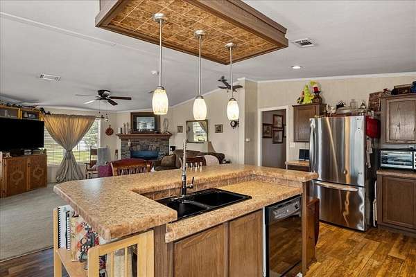 - Built-In Features, Cable TV Available, Eat-In Kitchen, High Speed Internet Available, In-Law Suite Floorplan, Kitchen Island, Open Floorplan, Pantry, Walk-In Closet(s)