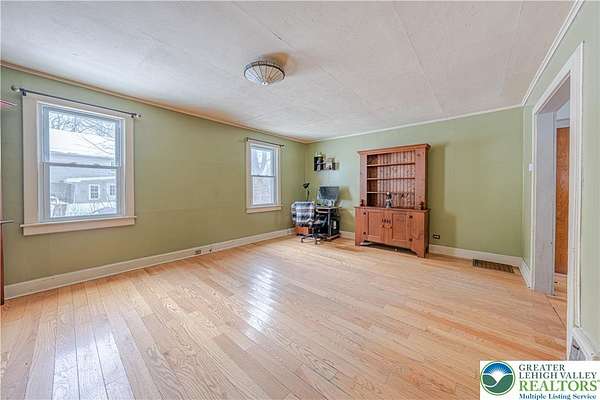 Tucked along Uniontown Rd in Lopatcong Twp, this circa 1900 Colonial farmhouse blends warmth, character, and possibility. This 4-bedroom, 1.5 bath home features hardwood floors, a cozy family room with a wood-burning stove, oil forced hot air heat, and a home office perfect for remote work. The finished attic offers flexible space for a guest retreat or bonus room. With its historic charm and solid footprint, the home provides a wonderful opportunity to personalize and enhance over time.Step outside and discover what truly sets this property apart. Situated on 6.57 acres, including 5.57 acres farm assessed under a separate tax ID for harvesting firewood, this is a rare offering. For outdoor enthusiasts, it is truly a hunter's dream. Acres of private woods provide space to explore, enjoy nature, and hunt on your own land. The property rises behind the home and levels at the top, offering peaceful golf course views and exceptional privacy.A deck off the home creates the perfect setting for entertaining, grilling, and evenings around a firepit. An above-ground pool with Trex decking is privately nestled among the trees. A large cleared yard area offers space for games, playground equipment, or target practice. Detached 20x20 garage. Replacement windows included for select areas.Conveniently located near shopping, dining, fairgrounds, golf, and major commuting routes, yet offering the land and lifestyle rarely found at this price point. Schedule your private showing today.