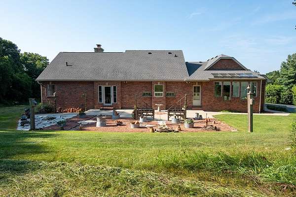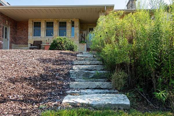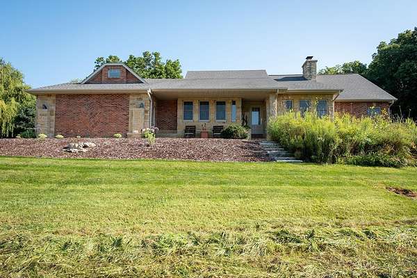 *CUSTOM BUILT AND TRULY UNIQUE PRAIRIE HOME ON 3.48 ACRES* Nestled on 3.48 acres of serene prairie landscape, this stunning Prairie-style custom-built brick and stone home masterfully blends timeless craftsmanship with modern comfort. Featuring 3 spacious bedrooms and 2 luxurious bathrooms, the home boasts an open floor plan highlighted by soaring cathedral ceilings, inset lighting, and skylights that flood the space with natural light. A charming loft overlooks the living area, where a striking double-sided limestone fireplace and a built-in double-sided china hutch with a built-in clock add character and warmth. The kitchen is a chef's dream with a center island, breakfast bar, granite countertops, and custom cabinetry crafted from cherry, oak, and maple to harmonize beautifully with the custom wood flooring. The master suite offers a spa-like retreat with his-and-her walk-in closets, corner storage closets matching the 3 woods, a private water closet, a corner soaker tub, double sinks, and a walk-in shower. Additional highlights include a bright atrium with built-in storage, a cozy sunroom with double glass doors, wood beams and sweeping prairie views, a custom office area, and a spacious laundry room with ample storage. Weather shield windows and limestone sills. Masterfully built with care and thoughtfulness given to every design choice. This home is filled with surprises and charm at every turn.