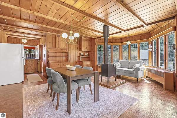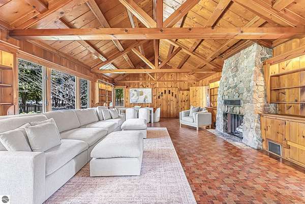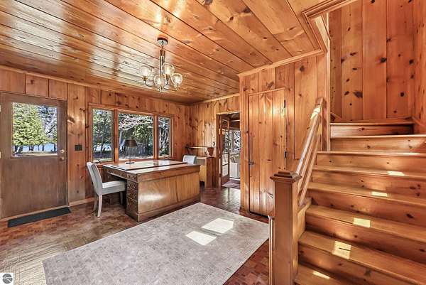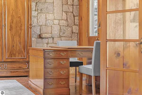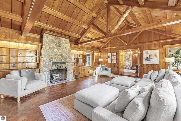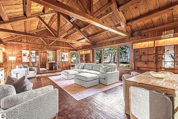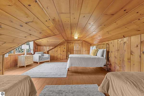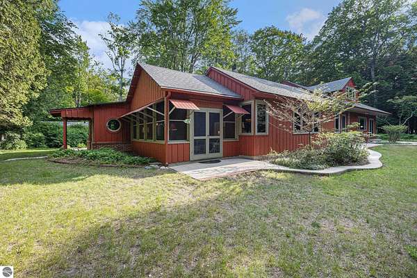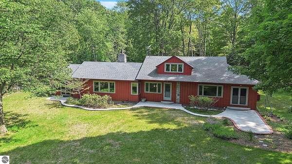 Little Glen Lake | South Shore Legacy Property| Rare Opportunity Set along 81 feet of pristine, hard-packed sandy frontage on the south shore of Little Glen Lake, this timeless lakefront estate captures the essence of Northern Michigan at its finest. Framed by a long, tree-lined approach, the property unfolds with a sense of arrival—private, peaceful, and deeply rooted in place. It's the kind of place that feels instantly known-Like a cherished cottage you've somehow always been connected to. Originally built in 1938 and thoughtfully maintained, the nearly 3,000 square foot home blends historic charm with spacious livability. Inside, you’ll find a series of inviting spaces—three bedrooms, three baths, and a collection of intimate nooks and architectural details that speak to a different era, carefully preserved for the next generation to enjoy. Expansive windows and outdoor living areas are oriented toward the water, where beautiful sunrise views stretch across Little Glen and reach toward the distant dunes. The setting is nothing short of captivating—calm mornings, sparkling water, and a landscape that changes beautifully with the seasons. The grounds are equally impressive. A generous lakeside yard offers space to gather, entertain, or simply unwind, while mature landscaping enhances both privacy and natural beauty. The recently installed, oversized septic system provides flexibility for future expansion, making this not only a place to enjoy today, but an investment in what’s possible tomorrow. Rarely does a property of this character and setting come to market. A true classic on Little Glen Lake—rich in history, elevated by its setting, and ready to be carried forward.
