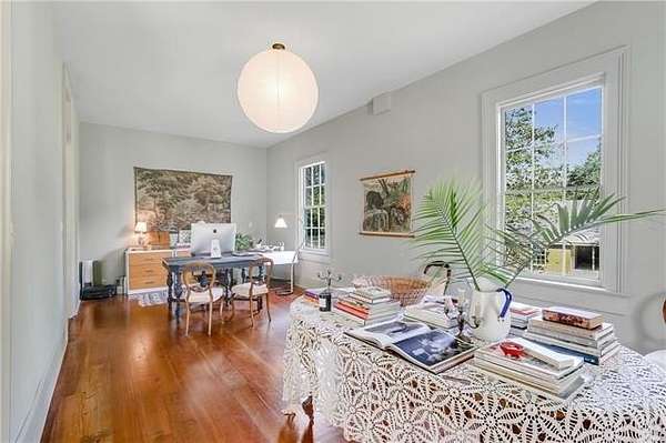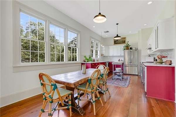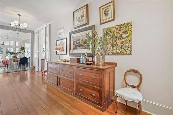 Set on 3.41 acres of park-like grounds shaded by mature oak & pecan trees, this 1850s center-hall home offers a rare balance of historic character and thoughtful modern living. The residence underwent an extensive renovation in 2021 by Logan Killen Interiors and Entablature, preserving original wood floors while introducing refined finishes and contemporary amenities throughout. Floor-to-ceiling windows frame unobstructed views of the surrounding landscape & private country setting.