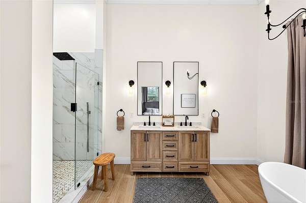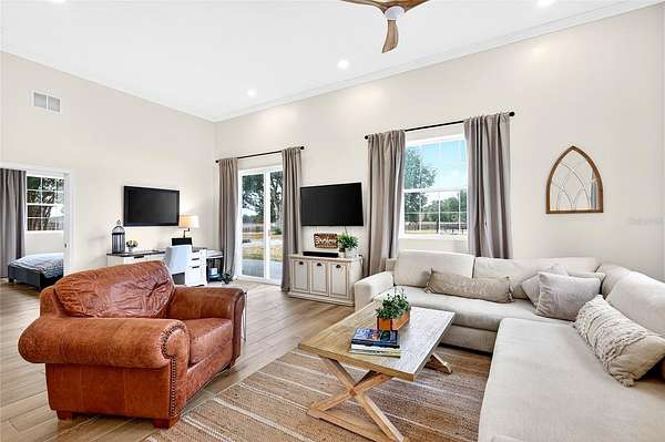 One or more photo(s) has been virtually staged. Under Construction. Still time to Pick your Colors! Welcome to this gorgeous gated 10 acre Turn Key Equestrian Estate where luxury living meets world class functionality. currently under construction, this farm and Barndominium will include: 40 x 150 Horse Barn with Cupolas and covered porches designed with the Lux Horse & Rider in mind! 10-12 Stalls with European Stall Fronts, beautifully stained Tongue & Groove walls, Auto Waters, Fans & Dutch Windows, 12 ft Aiselway with all mats, Board Fenced perimeter plus 8 individual paddocks., Barn ceilings and walls with Insulated Ceiling. climate controlled Feed Room, Tack Room, Custom indoor Grooming Stall, 2 Wash Racks with Hot & Cold. Barn Bathroom / Laundry room. 150 x 250 All weather arena with Irrigation plus 30 x 48 Hay / Equipment Storage with 12 ft walls + 2 Quarantine Stalls and or revenue option with RV Hookup. Designed by a Show Jumper and Rider / GC that knows how to layout a functional high end horse farm. The attached 3/2 residence is nothing short of amazing with high end finishes, elevated 12" ceilings, multiple porches for overlooking arena or horses, custom oversized Kitchen with island, Stone countertops, Porcelain Tile Floors and more! There is also still room to build another residence now or down the road should you choose to do so. Interior pics are of another Barndo farm that has recently completed and indicative of the stye and finishes, subject to change without prior notice. No expense spared with underground utilities and hand designed Gated Stone Entrance, your dream farm awaits! Don't settle for renovations for your legacy place whether it will be your primary or secondary - we know exactly how elevated riders live, work and dream! Only 15 miles to The World Equestrian Center!
