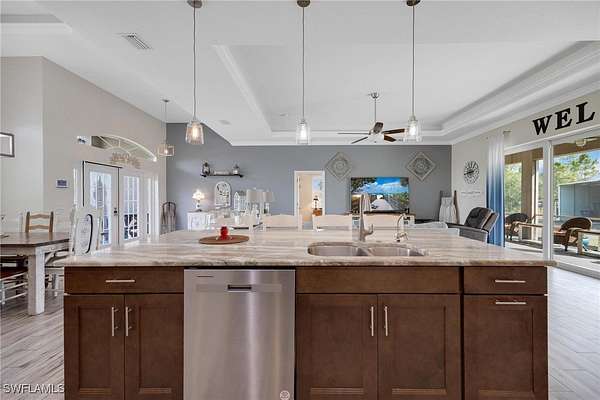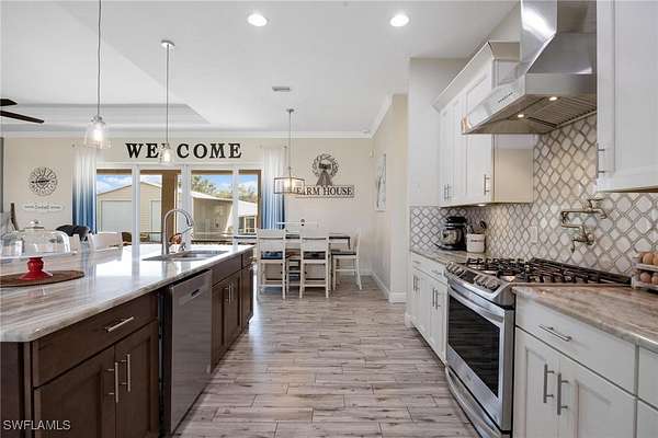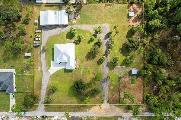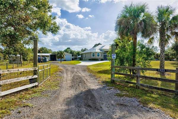 MOTIVATED SELLER - PRIVATE COUNTRY RETREAT! Built in 2018, this beautifully maintained single-family home sits on 2.5 FULLY FENCED ACRES with DUAL GATED ENTRY, offering the perfect blend of privacy, versatility, and function. A METAL ROOF, ATTACHED 2-CAR GARAGE, WHOLE-HOUSE GENERAC GENERATOR (2022) and WATER SOFTENER SYSTEM provide peace of mind. A major bonus is the CUSTOM 40x54 DETACHED WORKSHOP featuring TWO 13' RV DOORS, ELECTRIC, OUTDOOR UTILITY SINK and TWO CARPORTS (one with 30 AMP RV HOOKUP). The property also includes THREE RV PADS, two with 30 and 50 AMP SERVICE PLUS SEWER. Inside, enjoy LUXURY FINISHES throughout including FRENCH DOOR ENTRY, TILE FLOORING, VOLUME AND TRAY CEILINGS and a SPLIT-BEDROOM FLOOR PLAN. The OPEN-CONCEPT KITCHEN impresses with a GAS RANGE, SPACIOUS ISLAND, DESIGNER CABINETRY, CUSTOM TILE BACKSPLASH, ELEGANT COUNTERTOPS, BREAKFAST BAR, BREAKFAST NOOK and FORMAL DINING. The home also features a LARGE LAUNDRY ROOM with front-loading machines and storage, plus an EXPANSIVE SCREENED LANAI ideal for peaceful outdoor living. A standout addition is the 16x40 PRE-FAB INSULATED HURRICANE-RATED SHED (2023) with ELECTRIC, TWO AC UNITS, a SCREENED PORCH, DRYER HOOKUP, and its own ELECTRICAL PANEL, which is perfect for use as a guest suite, hobby room, or office. A 500-GALLON UNDERGROUND PROPANE TANK powers the stove, water heater, and generator. Located in FLOOD ZONE X (NO FLOOD INSURANCE REQUIRED) on the LEE AND HENDRY COUNTY LINE, this quiet, serene setting offers convenient access to shopping, dining and entertainment. All of this is within a NON-GATED AREA WITH NO HOA AND MINIMAL RESTRICTIONS. A rare find with endless possibilities!