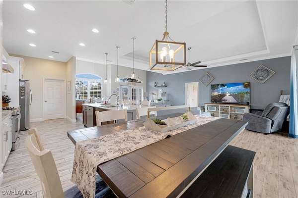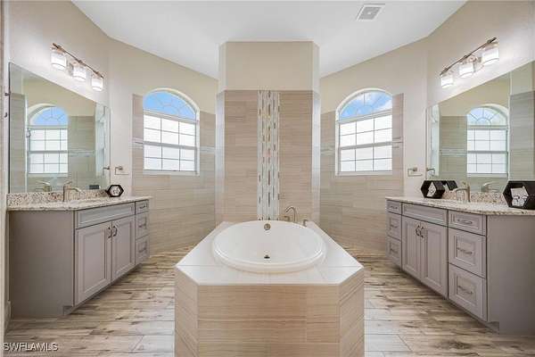 - Bathtub, Bedroom On Main Level, Breakfast Area, Breakfast Bar, Cable Tv, Dual Sinks, Eat In Kitchen, Entrance Foyer, French Doors Atrium Doors, High Ceilings, Kitchen Island, Living Dining Room, Main Level Primary, Multiple Primary Suites, Pantry, Pot Filler, Separate Shower, Split Bedrooms, Tray Ceilings, Walk In Closets, Window Treatments