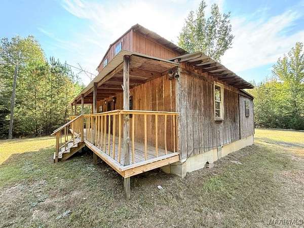 Have you been looking for land with a little space to get away and all at an affordable price? This 2-bedroom, 1-bath cabin on 5 acres in Wetumpka offers a great opportunity for buyers ready to make a smart move. This 1,368 sq ft cabin features hardwood floors, a metal roof, and a comfortable open layout. With a some TLC, this could be your weekend getaway or small-farm retreat. The property includes fenced pasture and the room to start your own mini-farm or just enjoy peaceful country living. Located along Tallassee Hwy, this home is convenient to Wetumpka amenities and less than 30 minutes to Montgomery.