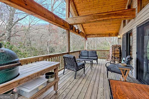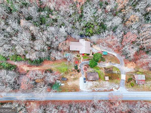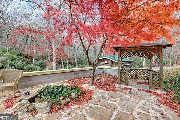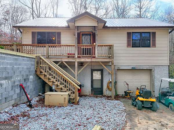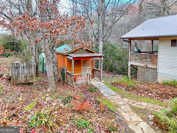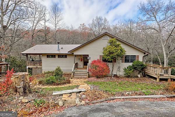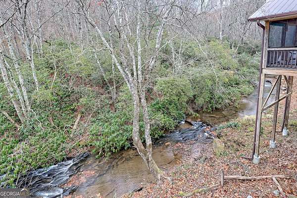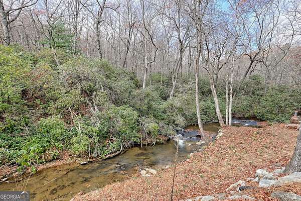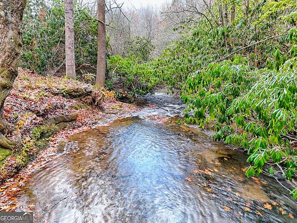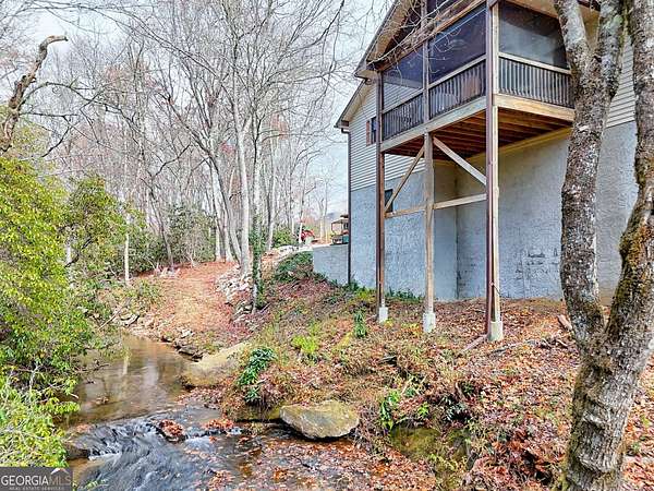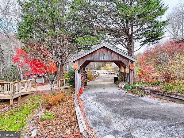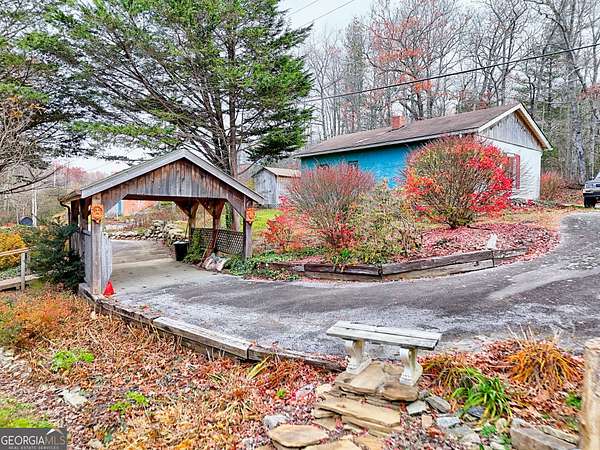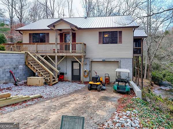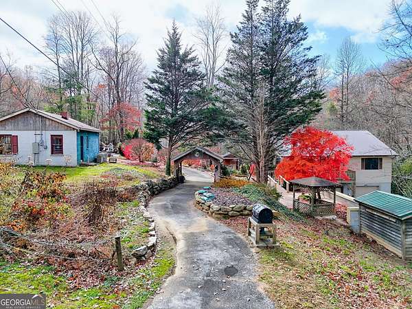 A Wonderful 3-bedroom, 2-bathroom, mountain homeplace overlooking a fast-flowing creek on 5 wooded acres. There are 2 large, covered porches for relaxing Creekside. The living room has beautiful all-wood ceilings; a wood-burning stove with stacked rock wall and rock hearth, and large picture windows to take in the views of the creek. It has a circular driveway with a small carport and a ramp walkway to the side door entrance. There is a full, unfinished basement with a tuck-under garage and a separate driveway. This property has tons of potential. There are picnic areas along the creek, Garden spots, several outbuildings for your chickens, or commercial potential along the road. One of the buildings along the road has a bathroom and used to be an antique store. One of the other buildings used to be an art studio. The property is not in a subdivision, so it may be able to be subdivided with permission from Macon County. This rare find property was built by and has been enjoyed by the same family for several years but is now ready for you to make it yours. Only 10 minutes to Highlands, NC and Sky Valley, GA. Located within a few minutes of several wineries, hiking trails, Ziplining, and Snow Tubing. Shown By Appointment only