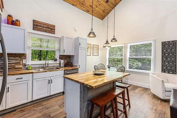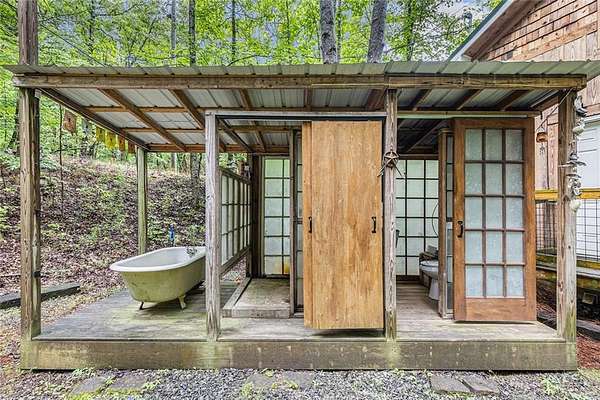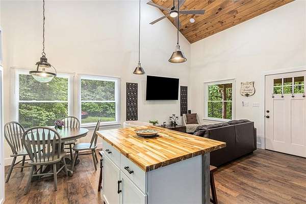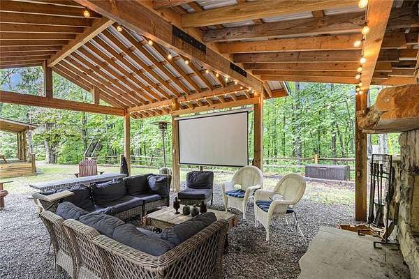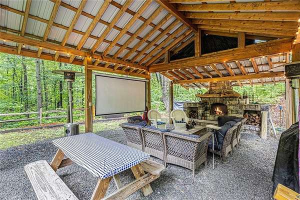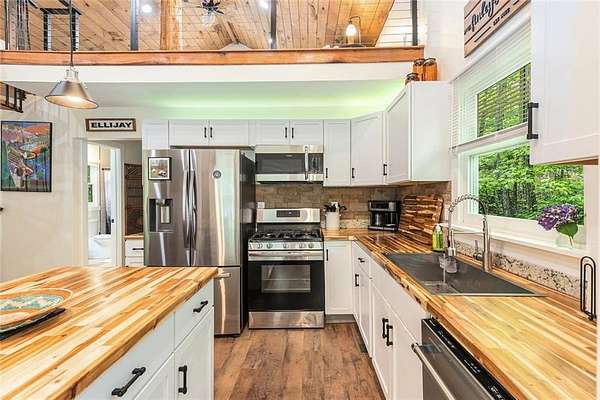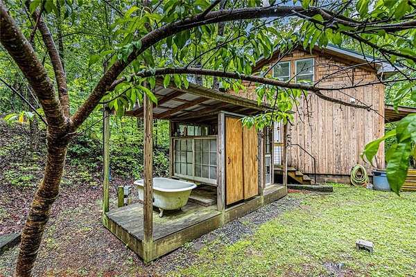 NEW PRICE!!! Embrace the Mountain Life at 783 Berean Church Rd, Ellijay, GA Opportunities like this do not present themselves very often - especially when they offer the perfect blend of rustic charm, modern comfort, and outdoor adventure. If you've been dreaming of a private mountain retreat, a cozy woodland escape, or your own slice of a high-demand short-term rental market, have a look at 783 Berean Church Rd in Ellijay. Tucked away on 2.35 serene acres in the North Georgia mountains, this 2021-built cabin is a true sanctuary. Its rustic exterior invites you in, while the interior surprises with cozy luxury and thoughtful design. With 1 bedroom, 1 bathroom, and a charming loft with another bed accessed via a spiral staircase, this home offers a perfect balance of comfort and character. The open-concept living space is bright, with a seamless flow between the kitchen, dining, and living areas. The kitchen boasts nearly new stainless steel appliances, including fridge, oven/cooktop, dishwasher, and microwave, complemented by gorgeous butcher block countertops and mood lighting that sets the perfect ambiance. The bathroom features tile flooring, a tiled shower, and a double vanity that adds a touch of elegance. Eastern Red Cedar posts both inside and out elevate the rustic vibe, grounding the home in its natural surroundings. Step outside to discover some of the best outdoor living spaces you'll find anywhere. A fully functional private outdoor bathroom, complete with shower, tub, and toilet-and yes, hot water-is a Pinterest-worthy addition. A few steps away is the large, covered living / playing / movie watching / snuggling by the fire / porch swinging / nap taking / grilling out / eating space. Yes, all of it, or any of it, depending on the day (or night). The large rock fireplace is an absolute gem, and serves as the centerpiece of the space. Get a fire crackling and kick back in the cushioned wicker furniture, put your feet up, and relax. Deeply. If relaxing isn't what you're after, then lower the retractable movie screen, power up the projector, and watch a movie. Outside. By the fire. For the adventurous at heart, Carter's Lake is just minutes away, offering boating, fishing, swimming, and breathtaking mountain views. And when you're ready to explore, downtown Ellijay is a short drive away, offering a delightful mix of dining, shopping, and breweries. Venture out a little for your choice of 9 vineyards/wineries. Known for its warm hospitality and vibrant community, Ellijay is a haven for outdoor enthusiasts, with an abundance of hiking and biking trails, canoe launches, and river tubing opportunities. Whether you're seeking a peaceful retreat, a stylish short-term rental, or a basecamp for mountain adventures, 783 Berean Church Rd is a place where memories are made and nature is your neighbor.
