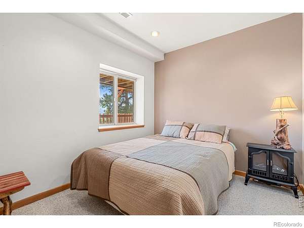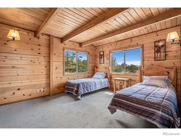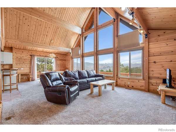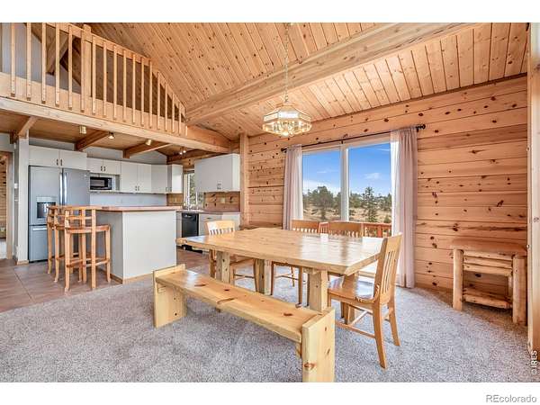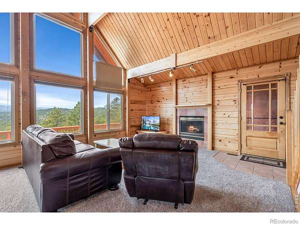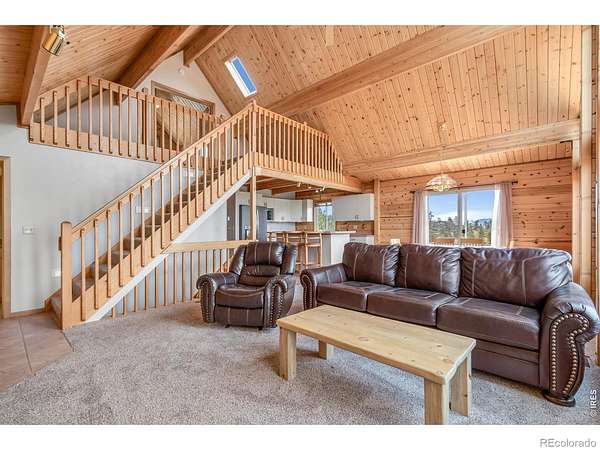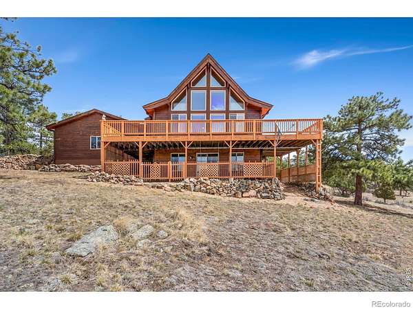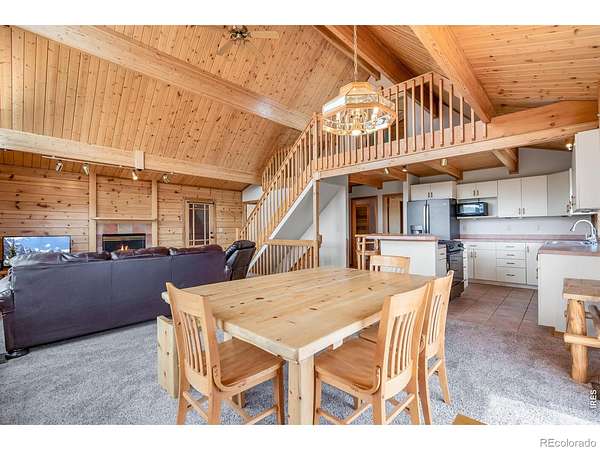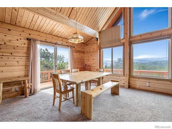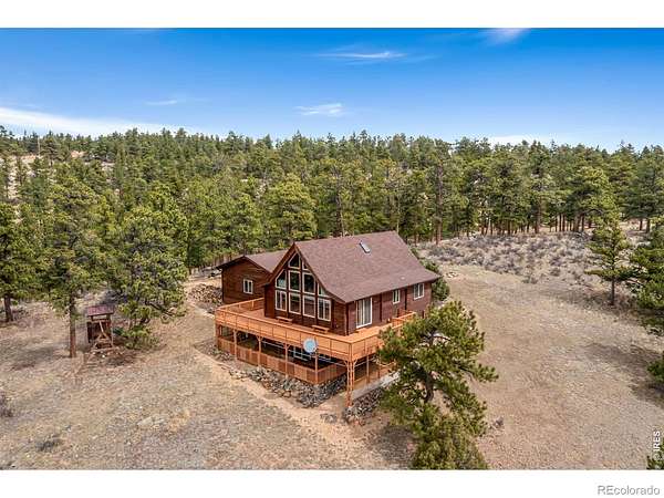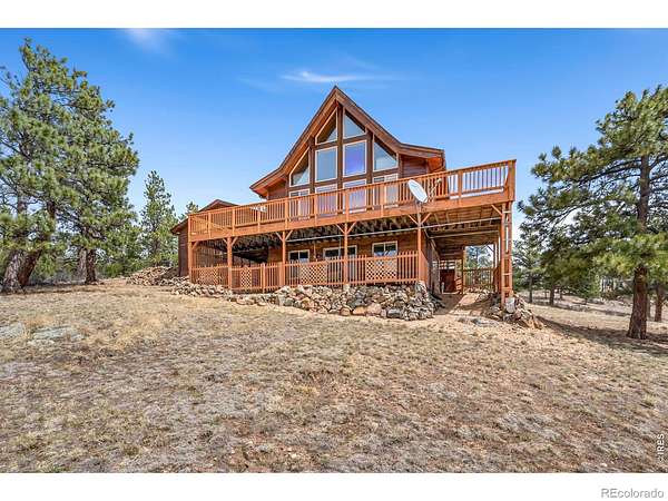 Kittle Real Estate presents your mountain escape on over 2 acres of natural beauty! Nestled in Glacier View Meadows, this cabin retreat is surrounded by mature trees and frequent wildlife sightings that bring the landscape to life. With numerous upgrades already completed and furniture included, this home is ready to enjoy from day one, whether as a full-time residence or a weekend getaway. Quality construction shines through custom woodwork, featuring knotty pine finishes and exposed wood beams that create an authentic mountain feel throughout. Inside, the open-concept living area is filled with natural light from large picture windows that frame the surrounding scenery, making the outdoors part of your everyday living experience. The main level includes a bedroom with direct access to a shared full bathroom, while upstairs offers a loft area and a primary suite with its own ensuite bathroom and walk-in closet. Downstairs, the walkout basement adds a second living area, a third bed and bath, plus additional rooms for storage or future customization to fit your needs. A covered and gated front patio connects easily to the detached 2-car garage and leads to a wraparound deck, your ultimate outdoor space perfect for taking in sunsets, the breathtaking mountain views, and the peaceful sounds of nature. A brick patio beneath the deck is already wired for a hot tub, creating the ideal spot to relax. Surrounded by national forest lands and featuring three lakes, Glacier View Meadows offers endless opportunities for hiking, fishing, hunting, and exploring. Located near Rigby's restaurant and approximately an hour from Fort Collins, you'll enjoy the balance of privacy and accessibility in this one-of-a-kind mountain setting.
