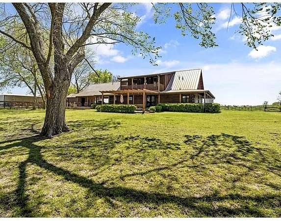 Come Live Your Dreams on this North Texas Ranch; with Horse Boarding, Dog Kennels, Beef Cattle and Honey Bees as a Potential and Tremendous Income Source. 8 Large Horse Stalls, Dog Kennels, Turn Outs, Pasture Grazing with Large Covered Training Area. There's no limit to your Dreams; or your Profits. This Custom Built 4-bedroom Log Home with Wrap-around Porch on 10.3 Acres is a Must See! Walking in, the First impression is the Open Concept with High Vaulted Ceilings with exposed Beams and a Colorado River Stone Fireplace. The Master Bedroom Suite and the Guest Bedroom or Office are all on the Main Level. Large Loft Upstairs with 2 more Bedrooms, Full bath, and Wide-Open Entertainment Room that opens up to a Covered Balcony Overlooking your own Private Pond Stocked with Plenty of Fish. Lots of Outdoor Entertainment Space for those Cookouts with Covered Porches and Patio areas. In Addition to the Home is a 7,000-square-foot Foot Barn for all your Animals. The Horse Stalls, all with Pipe fence Turn-out, a 20x50 RV Garage, a 28x38 Workshop-Garage with Office or Possible Additional Living Quarters with a Full Bathroom, a 20x50 Covered area for Farm Equipment, Hay, or Trailers, 40x40 Covered area for Animals. There are also Tack, Feed, and Wash Rooms. The lower Agriculture taxation is already in Place. Sellers grew up in the Country, both with "Ranch Heritage" from their childhood. Also, have sold other Ranch Properties in Grandview before moving to Whitewright. Seller moving to be closer to family.*Additional Land is Available to PurchaseSeller States All the Land Across the Street will not be Developed as it's in a Generational Trust *