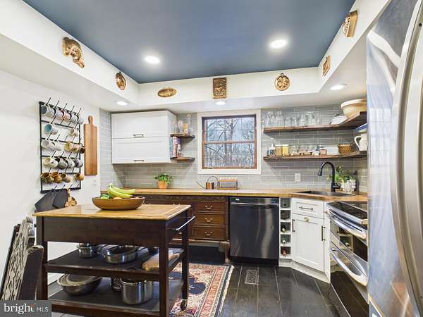 - Breakfast Area, Carpet, Ceiling Fan(s), Combination Kitchen/Dining, Dining Area, Eat-In Kitchen, Entry Level Bedroom, Exposed Beams, Family Room Off Kitchen, Pantry, Recessed Lighting, Store/Office, Table Space Kitchen, Traditional Floor Plan, Tub Shower Bathroom, Upgraded Countertops, Wood Floors, Wood Stove
