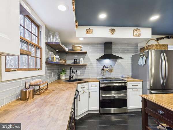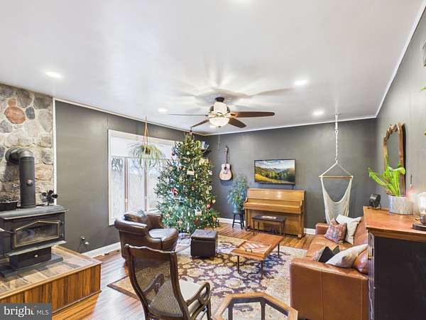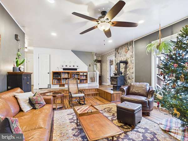 Nestled in the quiet area of South Berkeley County, this charming Cape Cod home offers a perfect blend of comfort and craftsmanship. With 3 bedrooms and 2 full baths, the interior features a traditional floor plan adorned with exposed beams and an upgraded and unique kitchen area dressed in a charming country home esque. It boasts stainless steel appliances, a double oven and a cozy breakfast area, seamlessly connecting to the brand new family room addition, ideal for gatherings or it's current use as a school house. Enjoy the warmth of the free-standing wood stove on chilly evenings. Set on a generous 4.81 +/- acre lot (4 total lots,) the property backs to lush trees, providing a private retreat with stunning mountain views. The exterior features a welcoming porch, secure storage, and play areas, perfect for outdoor enjoyment. A heated and secure outdoor office area allows one to focus on their work in seclusion. Conveniently located near Rt45, I-81 and commuter lots, this residence combines tranquility with accessibility. Experience the unique charm and inviting atmosphere that makes this property a true home. Did I mention to bring the chickens and horses?
